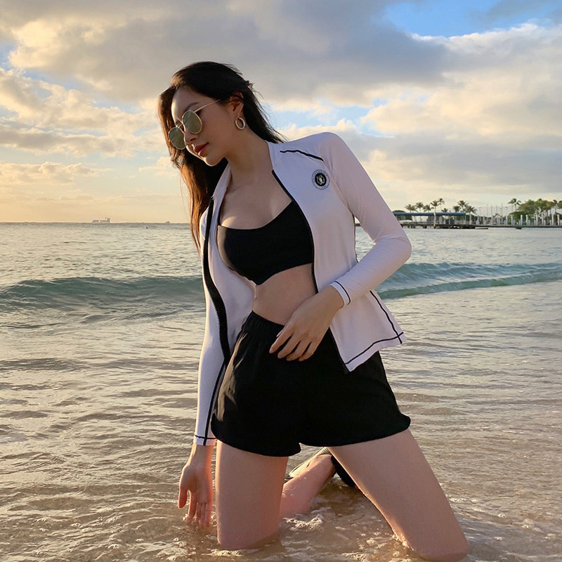 공장 직공급 한국판 스포츠 스타일 긴팔 바지 스플릿 커플 수영복 온천 수영복 비키니 4 종 세트스토어 가기