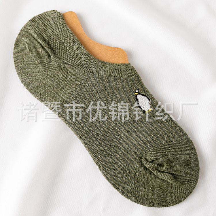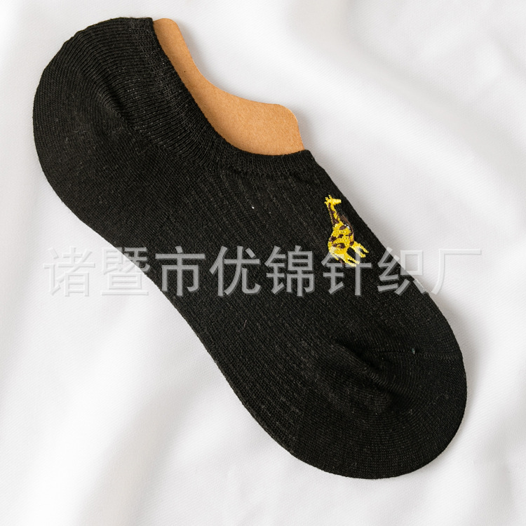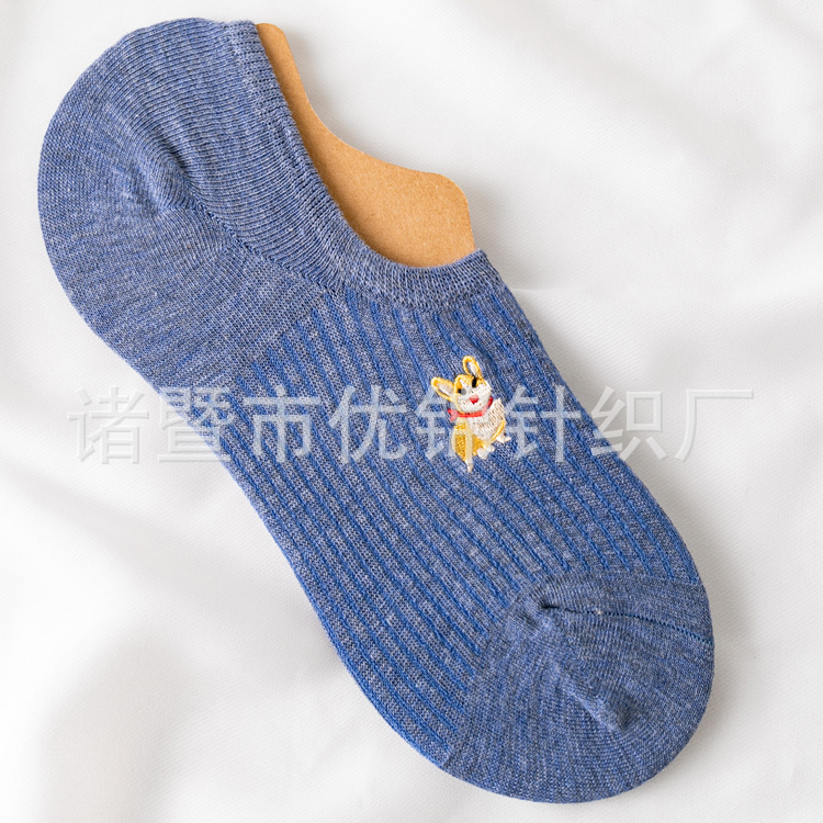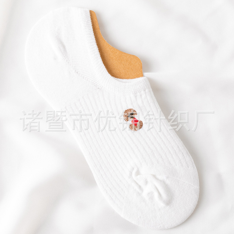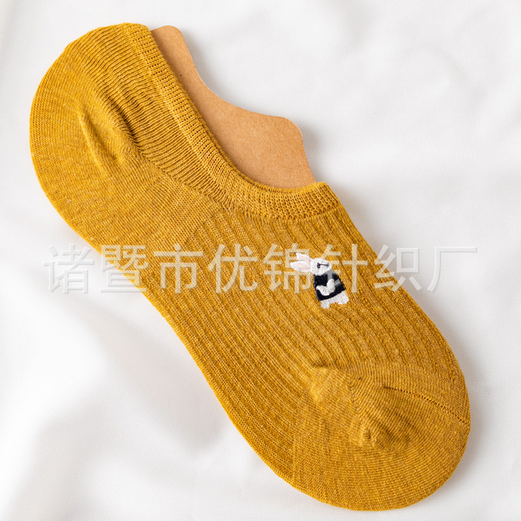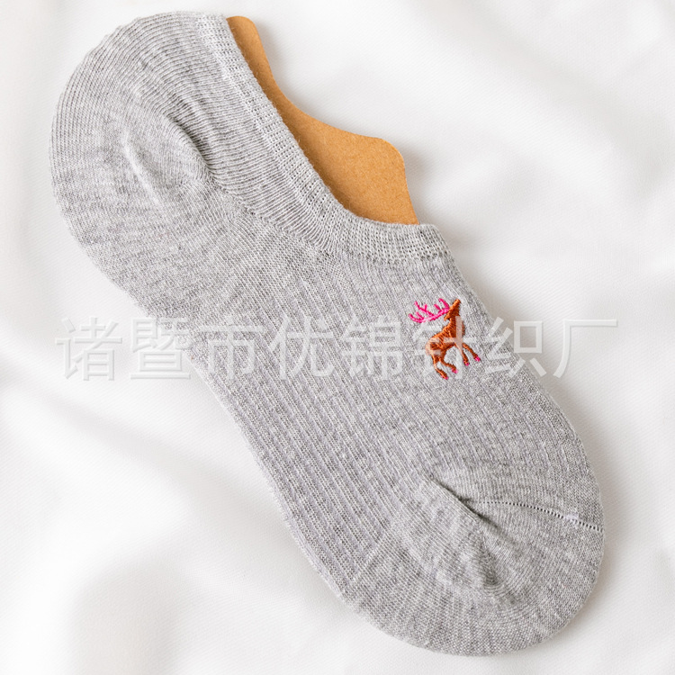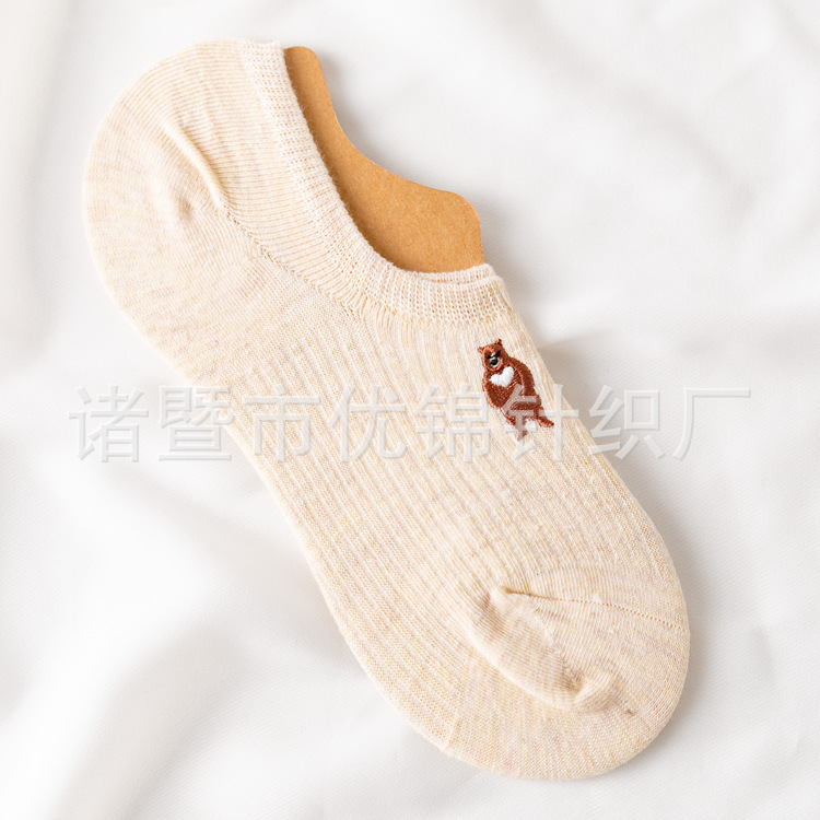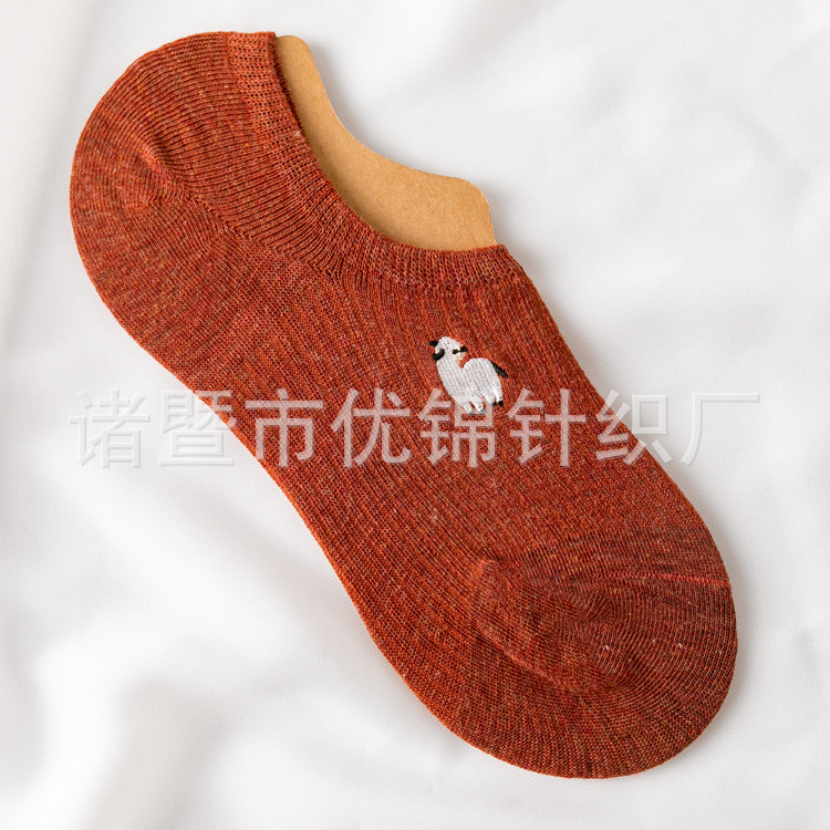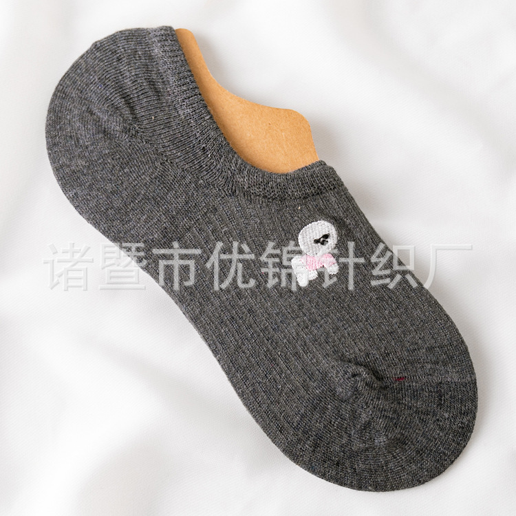 工厂直供日韩风格甜美卡通刺绣硅胶防脱跟女浅口船袜