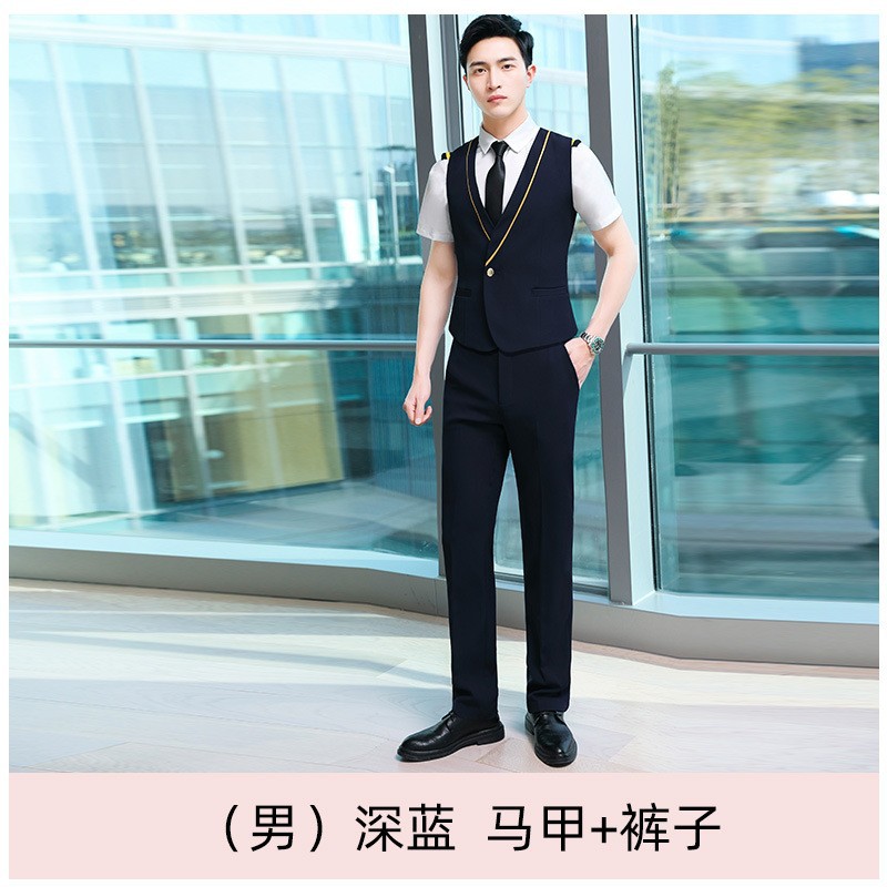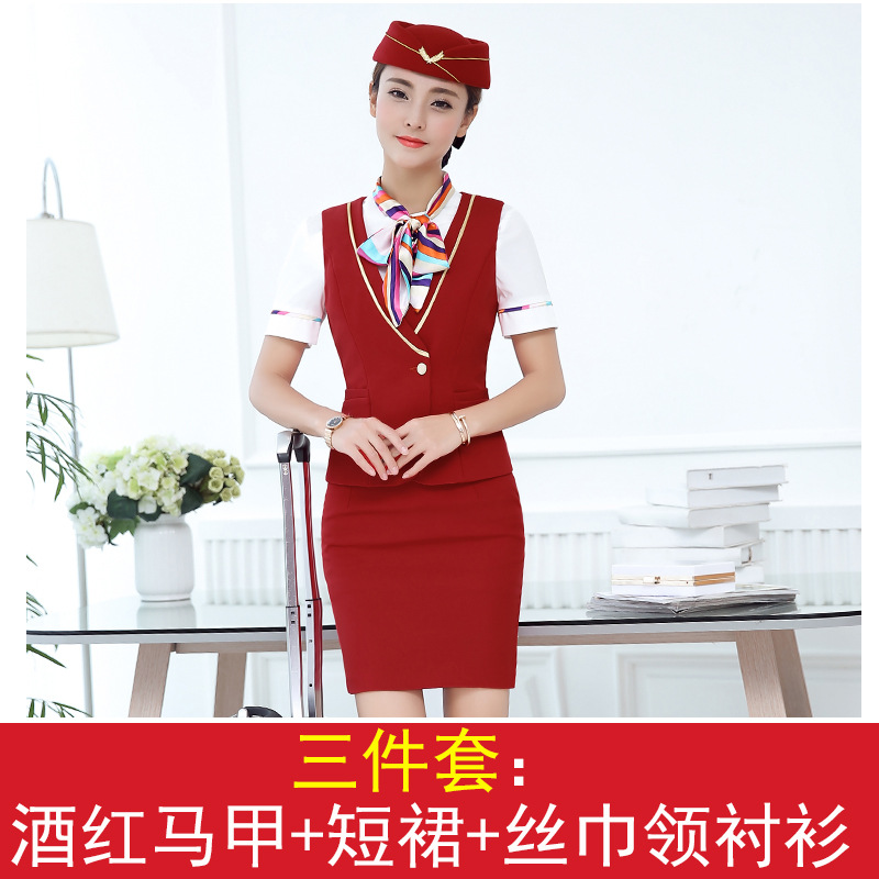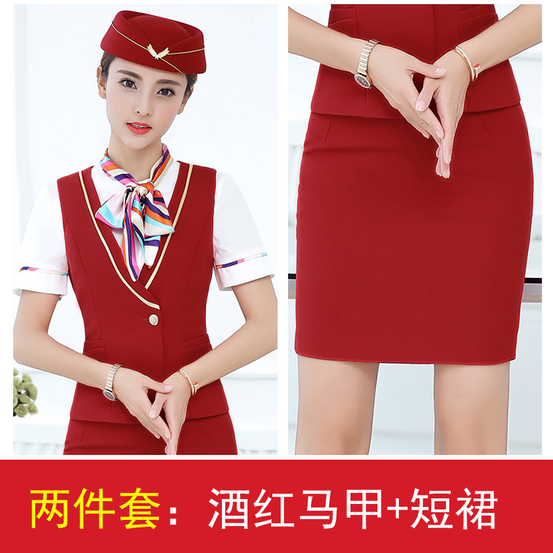 스튜어디스 유니폼 전문 세트 여성의 여름 조끼 원피스 보석 가게 앞 책상 작업 의류 고속 철도 비행 승무원 학교 의류