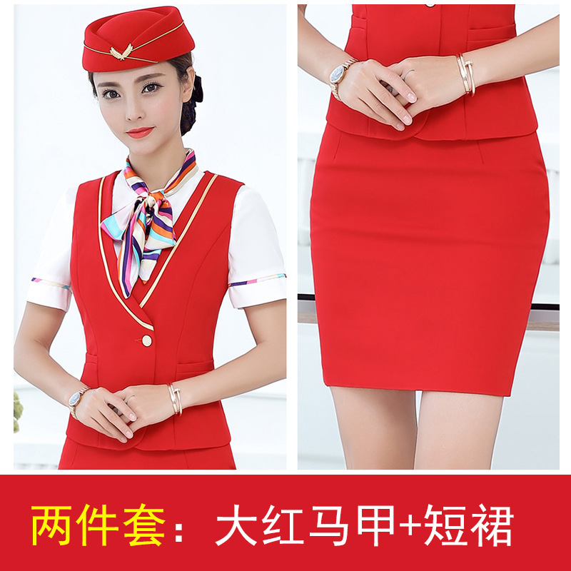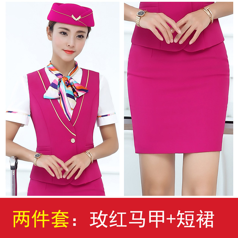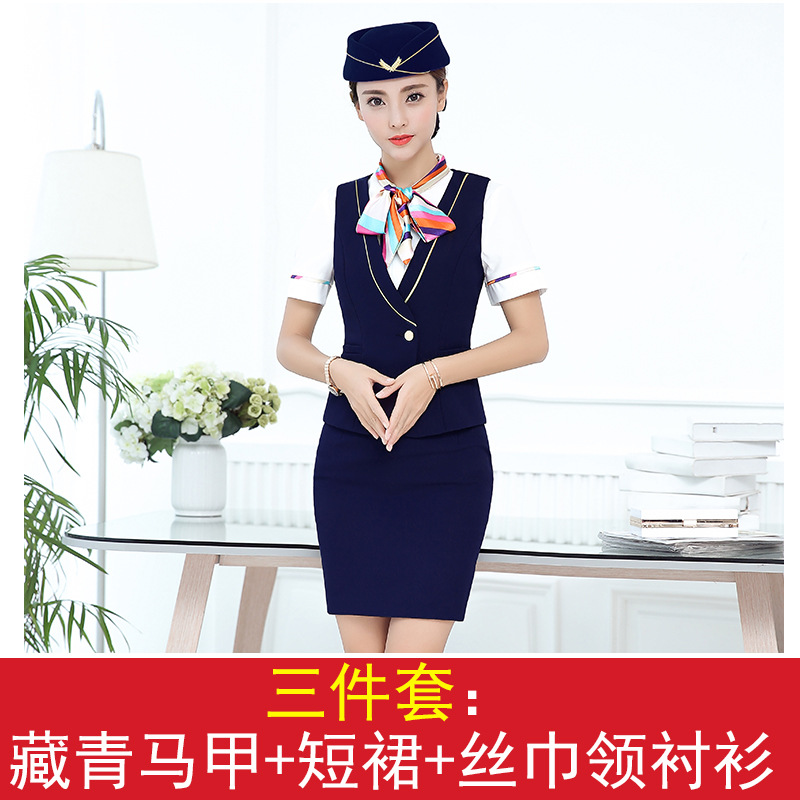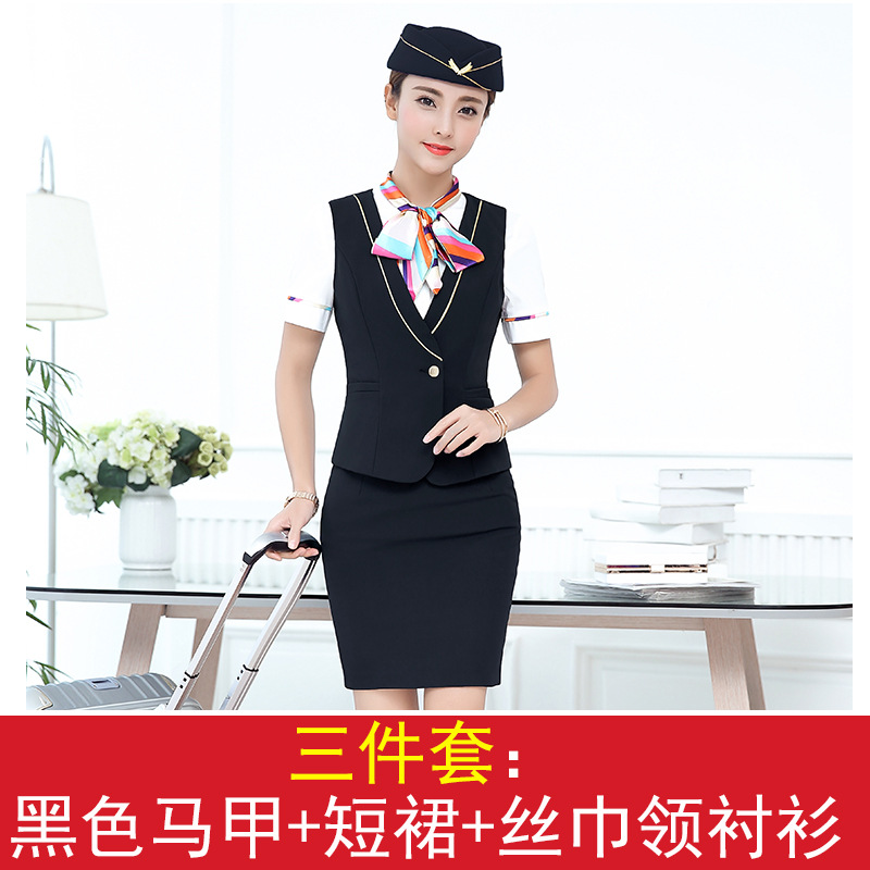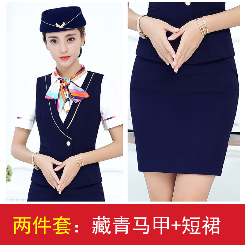 스튜어디스 유니폼 전문 세트 여성의 여름 조끼 원피스 보석 가게 앞 책상 작업 의류 고속 철도 비행 승무원 학교 의류스토어 가기