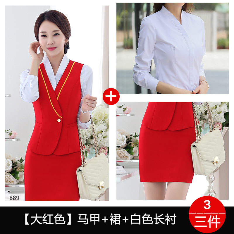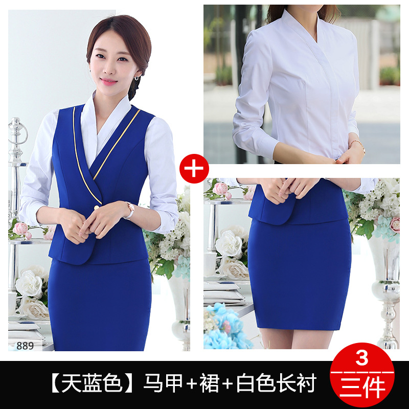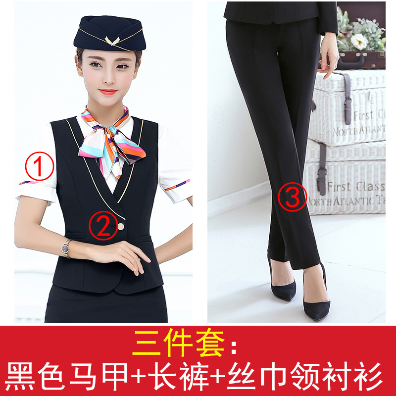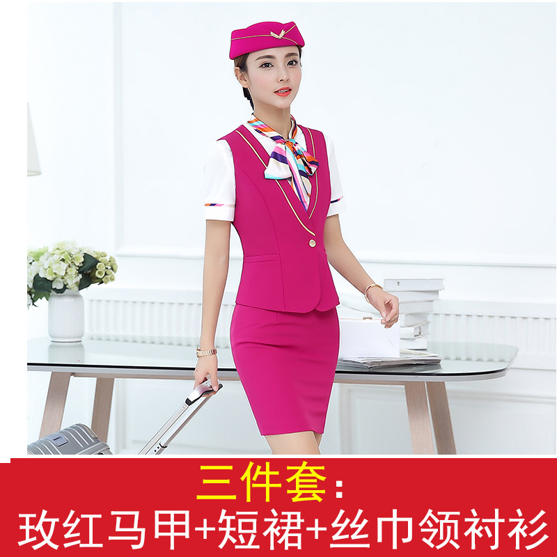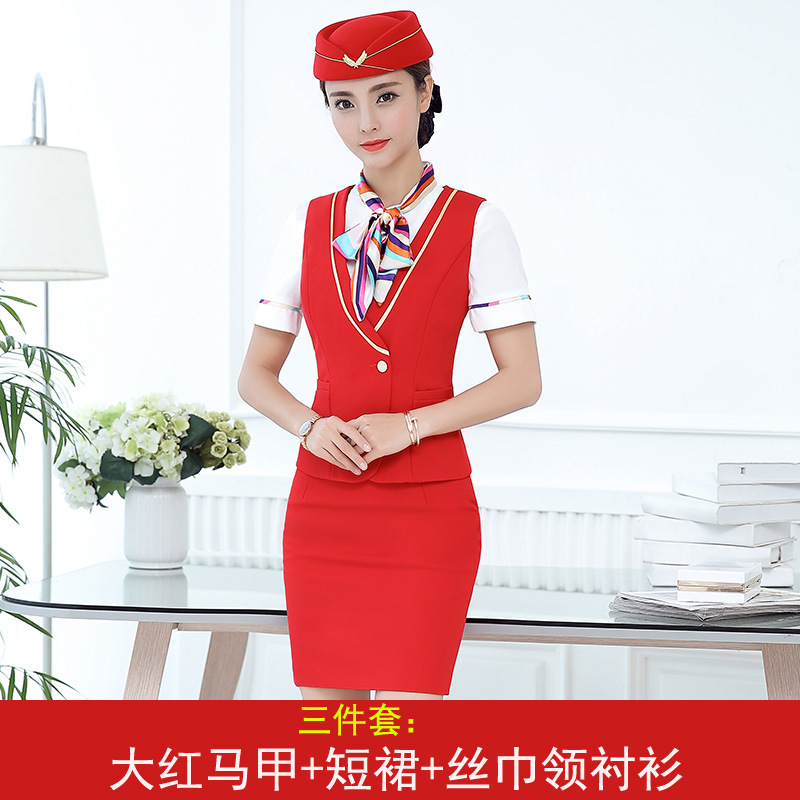 스튜어디스 유니폼 전문 세트 여성의 여름 조끼 원피스 보석 가게 앞 책상 작업 의류 고속 철도 비행 승무원 학교 의류스토어 가기
