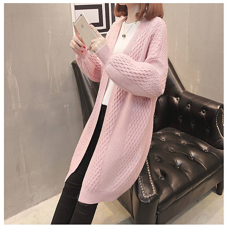 2025 가을 겨울 신상 루즈핏 V넥 랜턴 슬리브 중간 길이 스웨터 가디건 솔리드 컬러 니트 여성 자켓스토어 가기
