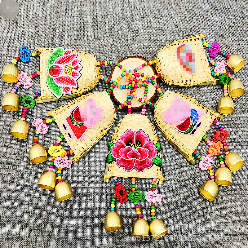 핫 세일 윈난 민족 대나무 쓰레받기 모란 꽃 바람 차임 손 자수 걸이 장식품 공예 보석 도매스토어 가기