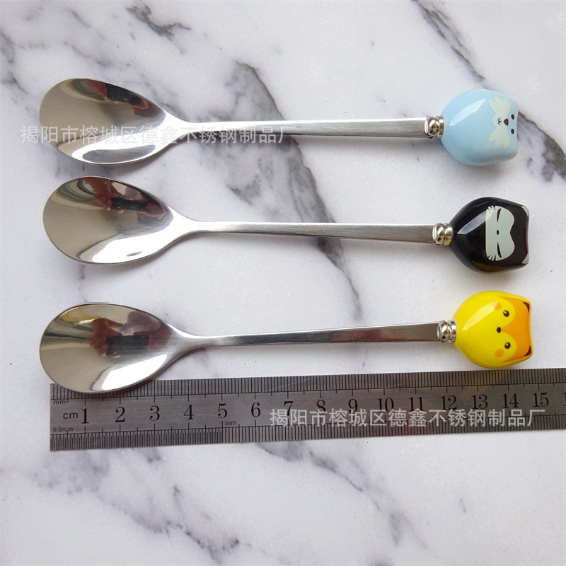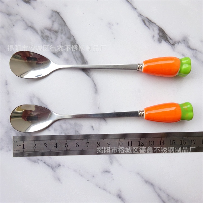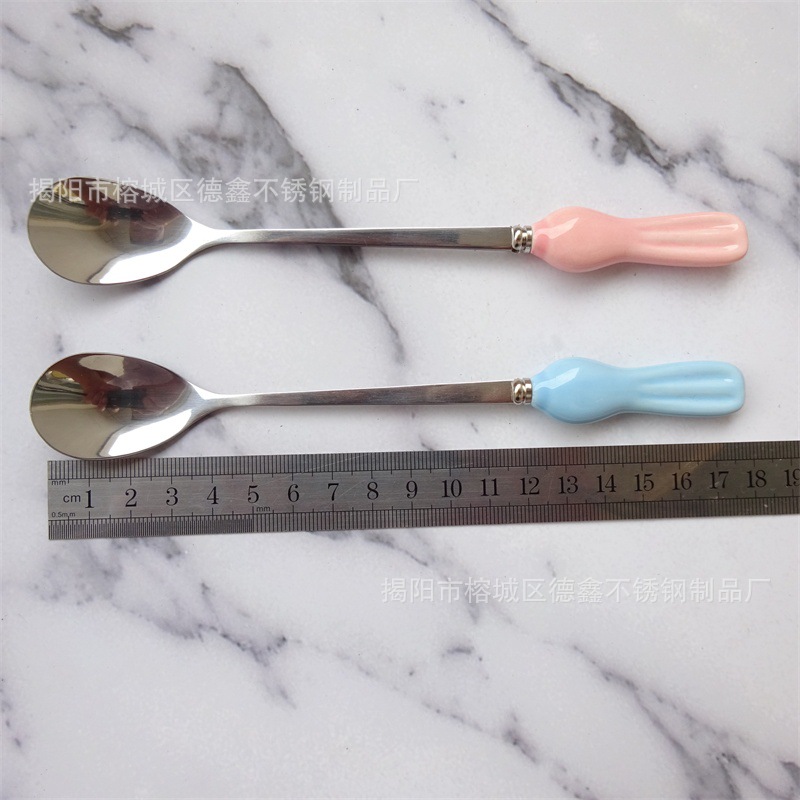 크로스 보더 크리에이티브 세라믹 스테인레스 스틸 식기 귀여운 만화 당근 토끼 믹싱 스푼 커피 스푼