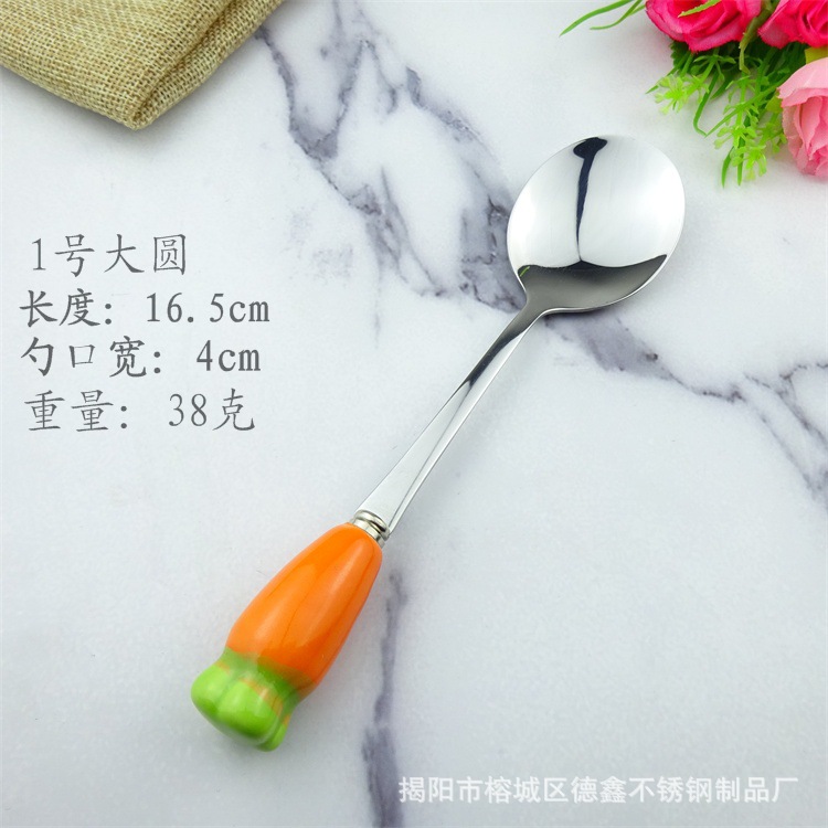 크로스 보더 크리에이티브 세라믹 스테인레스 스틸 식기 귀여운 만화 당근 토끼 믹싱 스푼 커피 스푼스토어 가기