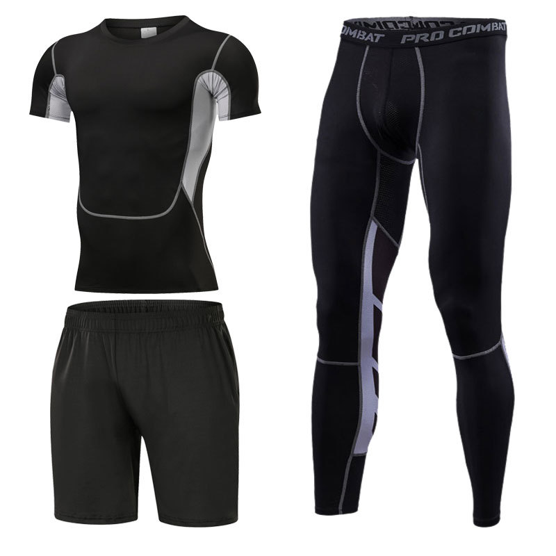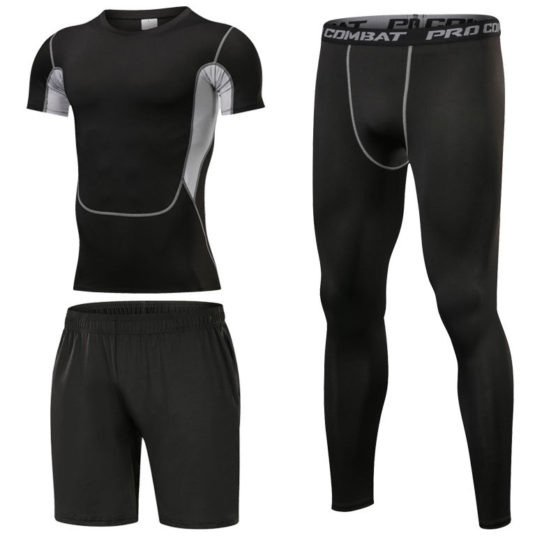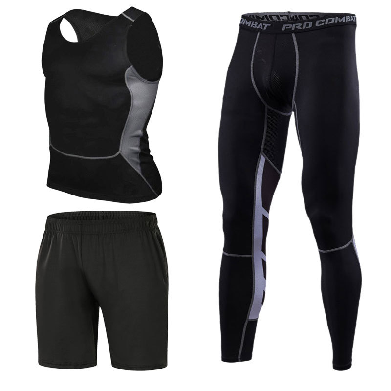 스포츠 스타킹 세트 3 피스 피트니스 세트 속건 반팔 긴팔 조끼 피트니스 바지 달리기 농구 훈련스토어 가기