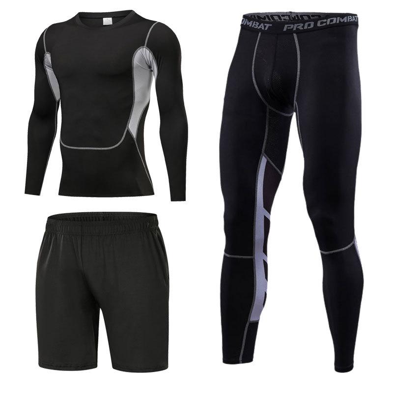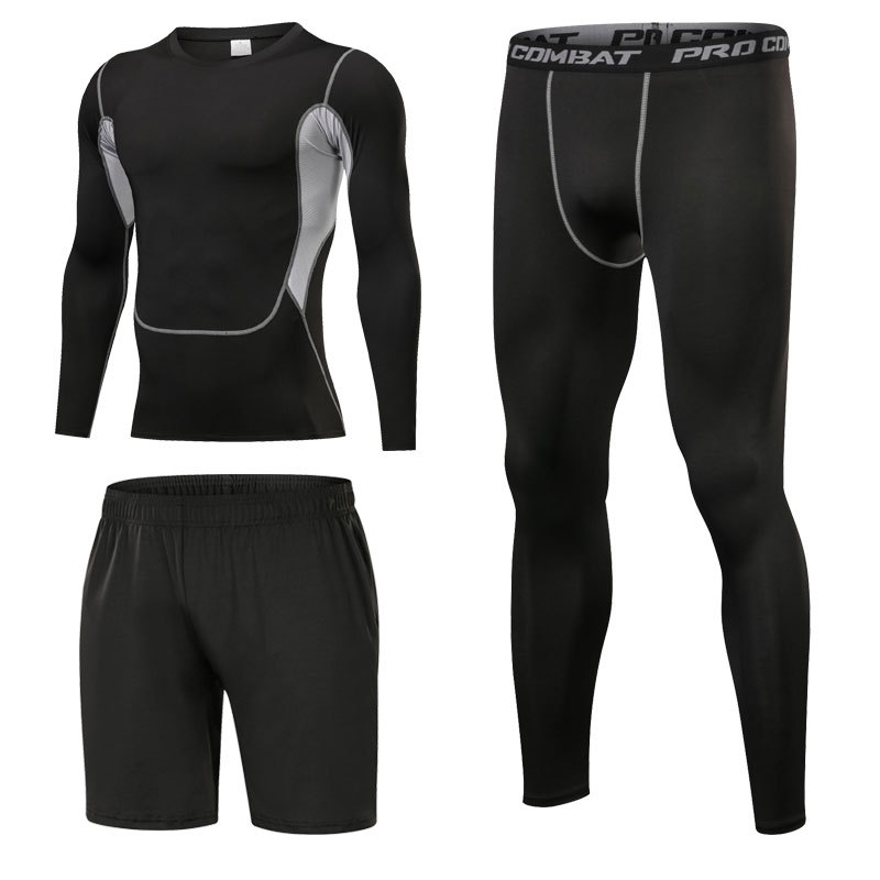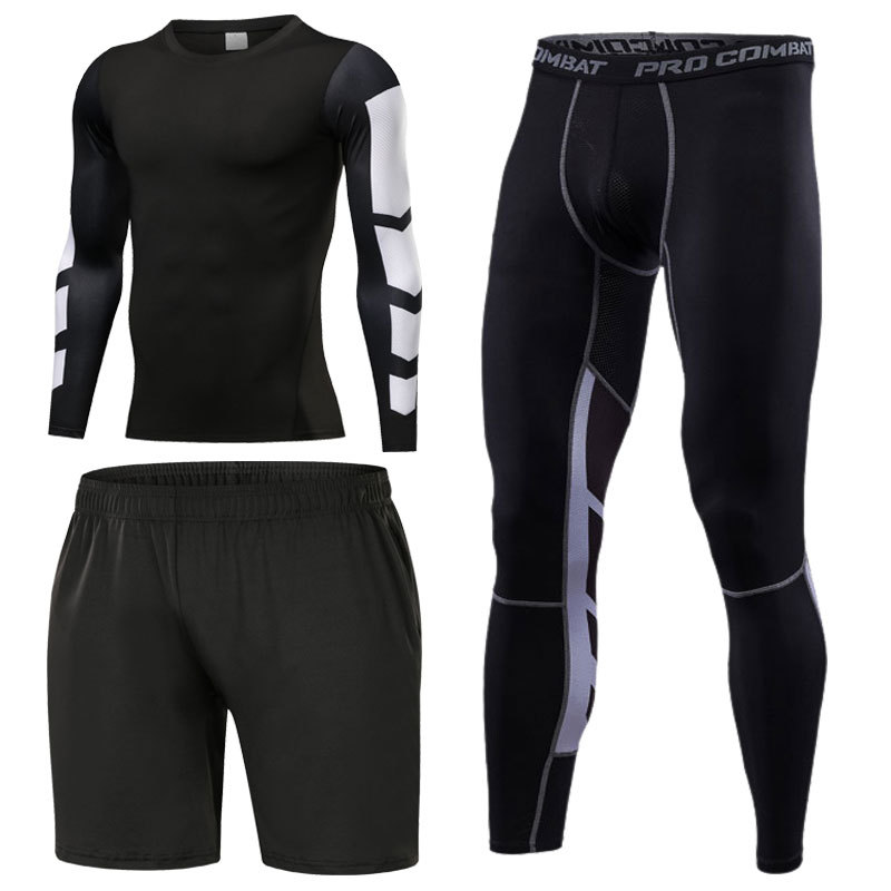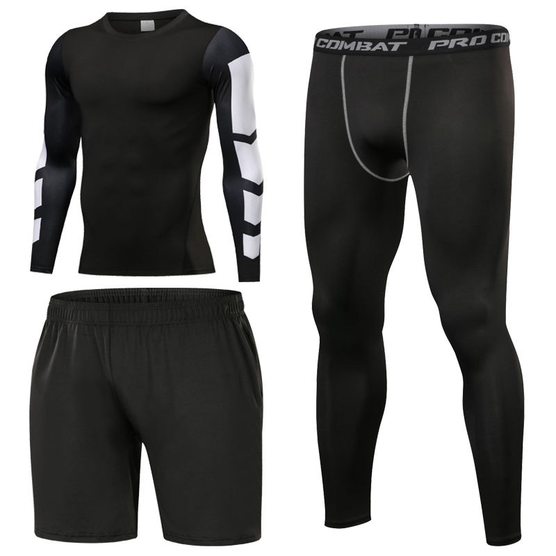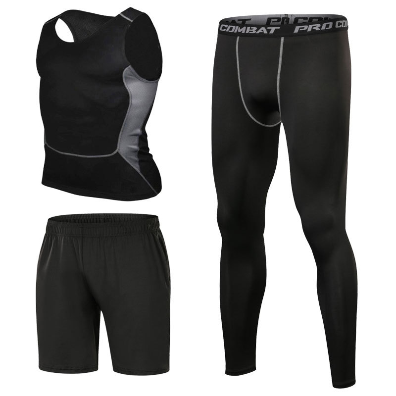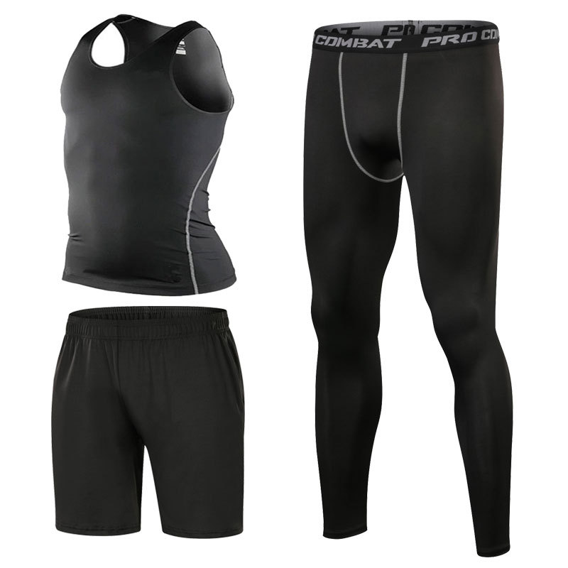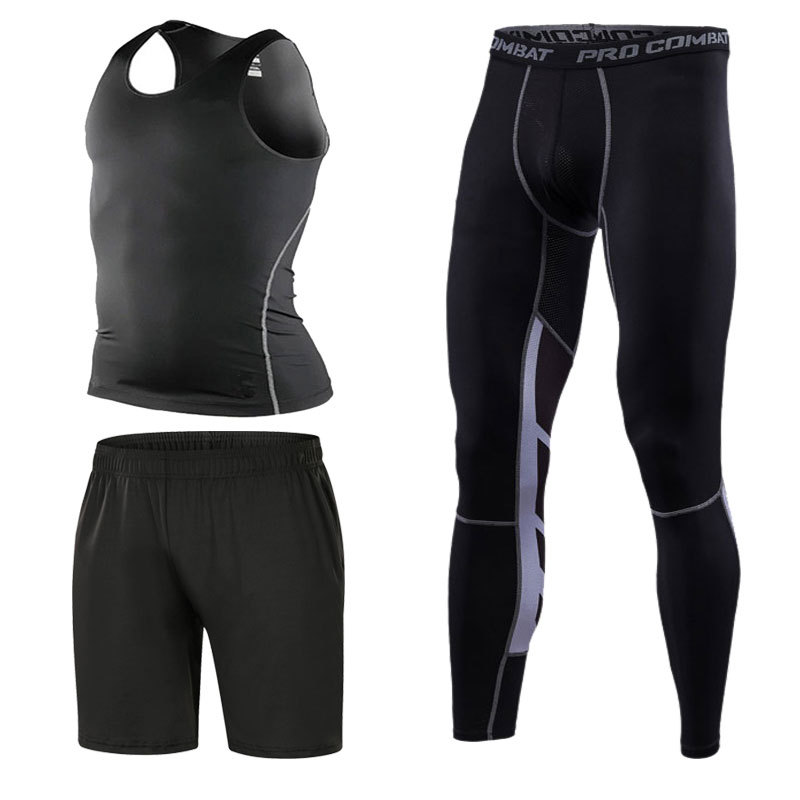 스포츠 스타킹 세트 3 피스 피트니스 세트 속건 반팔 긴팔 조끼 피트니스 바지 달리기 농구 훈련