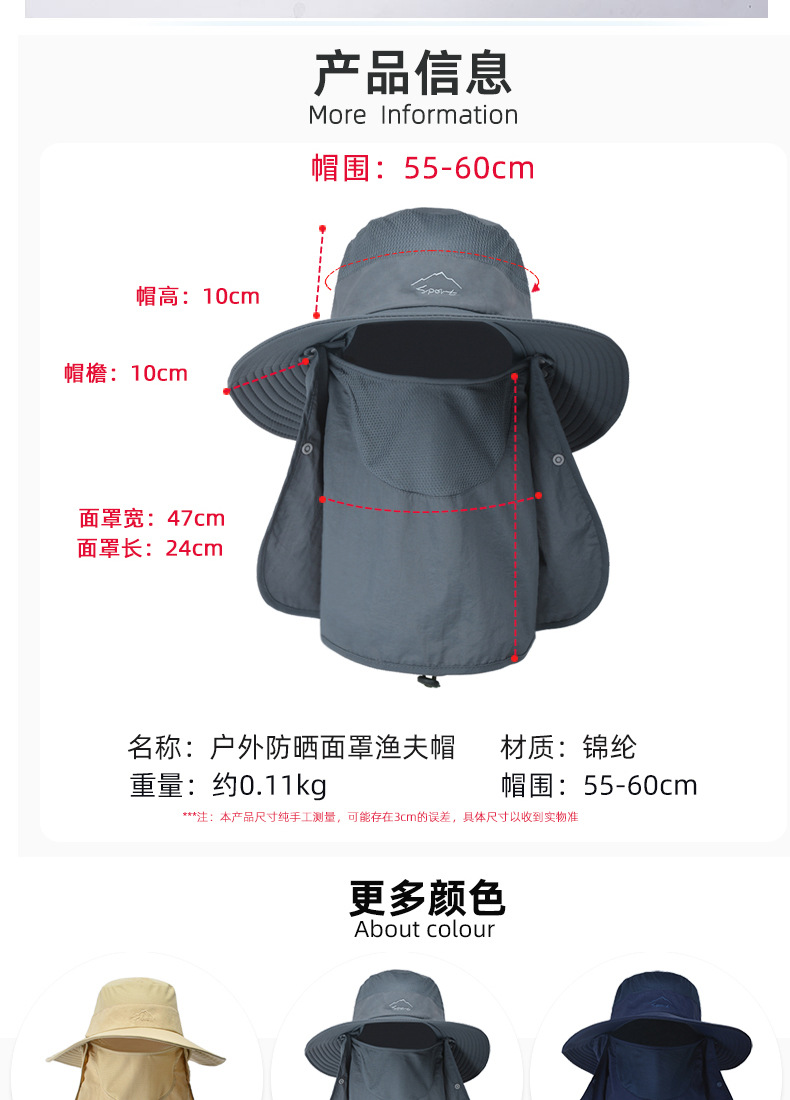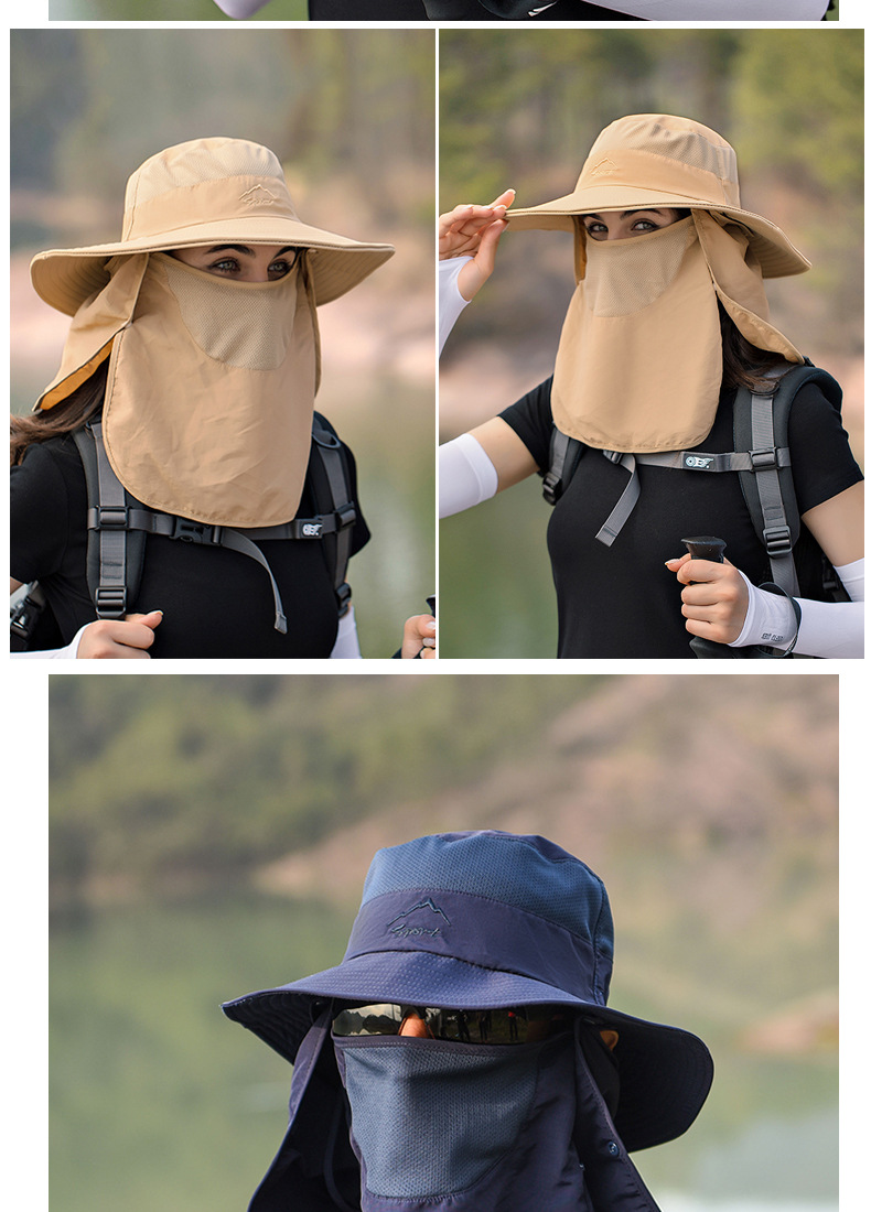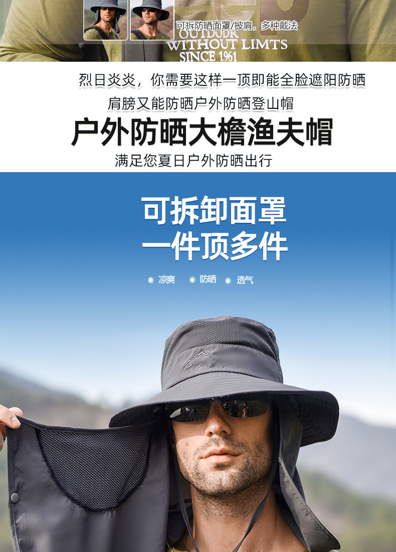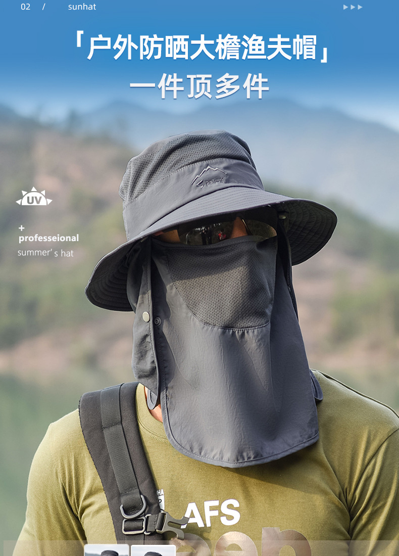 9073 모자 남성용 태양 모자 여름 야외 자외선 차단제 어부 모자 분리형 낚시 통기성 태양 모자 여성용 얼굴 커버 모자