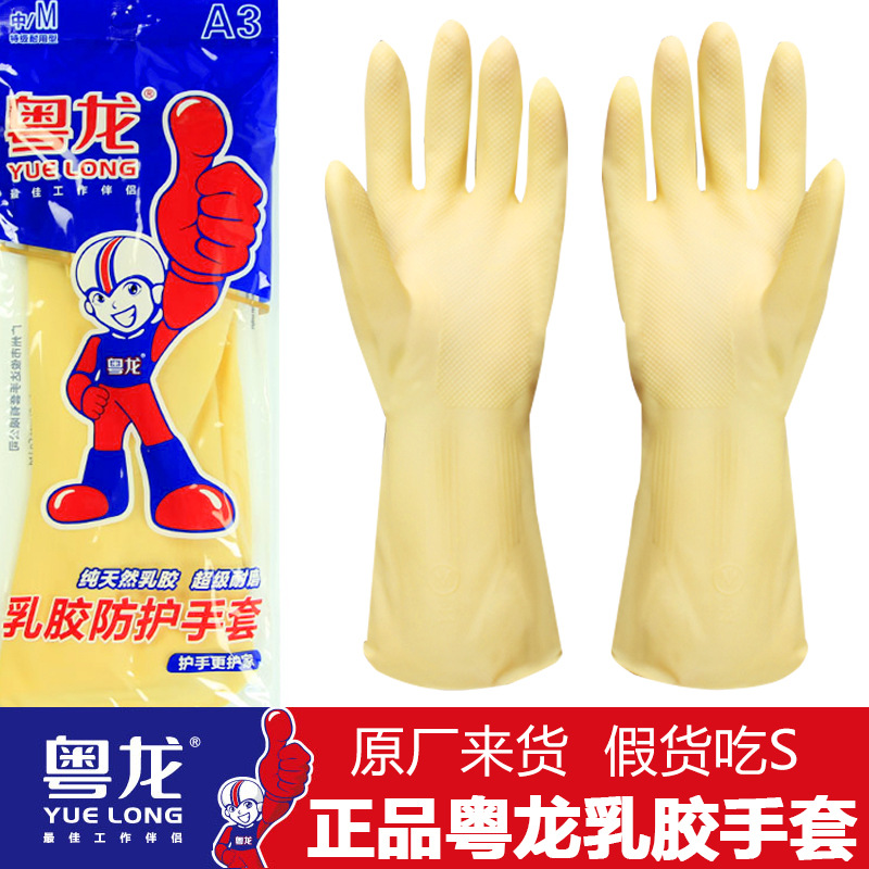 Yuelong 라텍스 장갑 A3 쇠고기 힘줄 고무 두꺼운 산 및 알칼리 저항 식기 세척 가정용 주방 산업 노동 보호 가정용 장갑