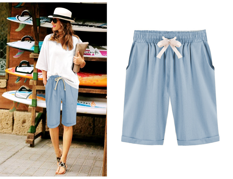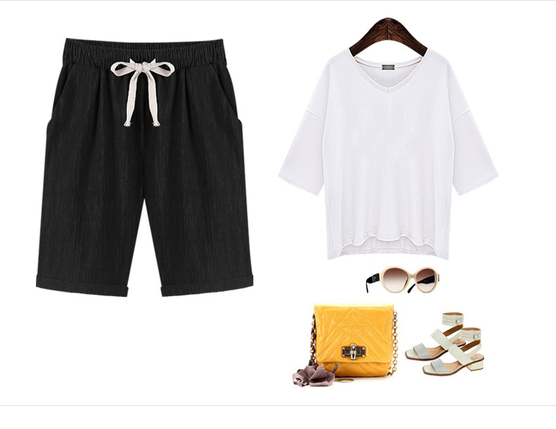 중간 바지 여성 여름 느슨한 바지 새로운 스트레이트 바지 지방 mm 대형 플러스 지방 슬리밍 캐주얼 여성 바지 얇은 섹션 5부 바지