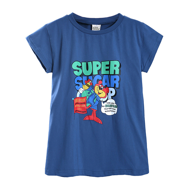 2024 여름 어린이 원피스 소녀 만화 인쇄 긴 티셔츠 아기 소녀 짧은 소매 스커트 아동복 도매스토어 가기