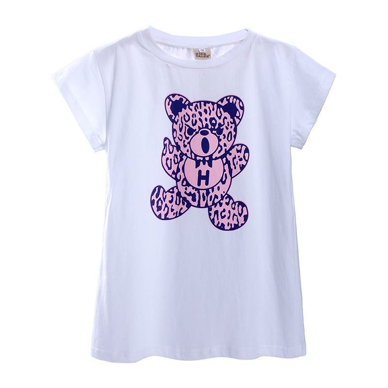 【款式】夏季儿童连衣裙女童卡通印花长款T恤女宝宝短袖裙童装批发