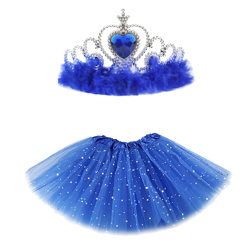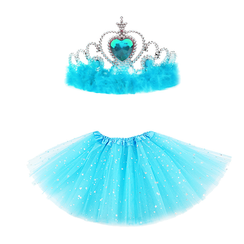 欧美新款跨境冰雪奇缘公主羽毛皇冠儿童五角星亮片tutu网纱裙套装