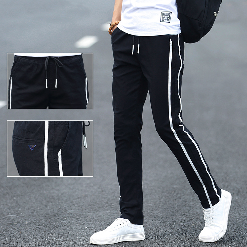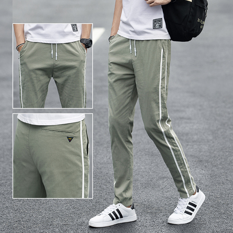 여름 바지 남성용 한국식 유행 느슨한 스트레이트 다리 스포츠 바지 학생 바지 청소년 얇은 남성 캐주얼 바지