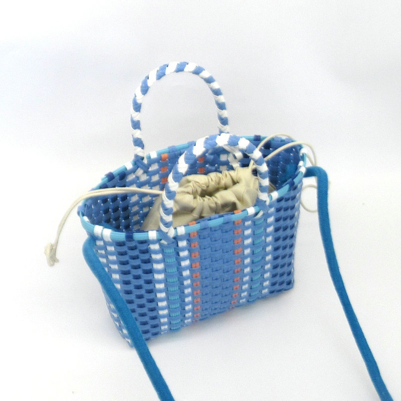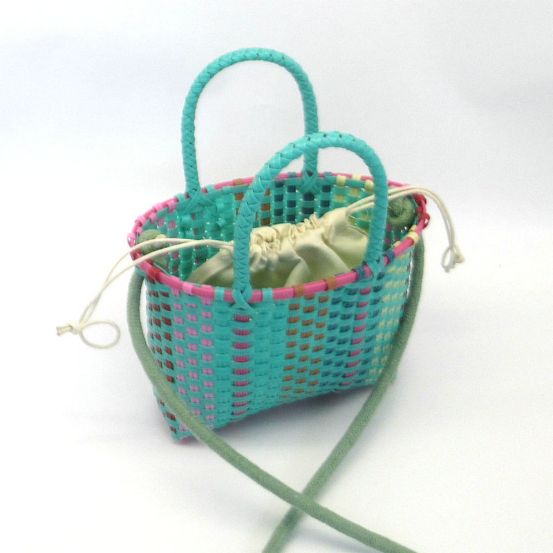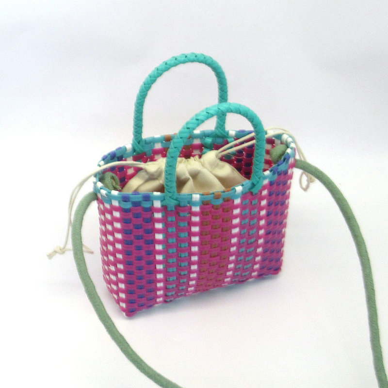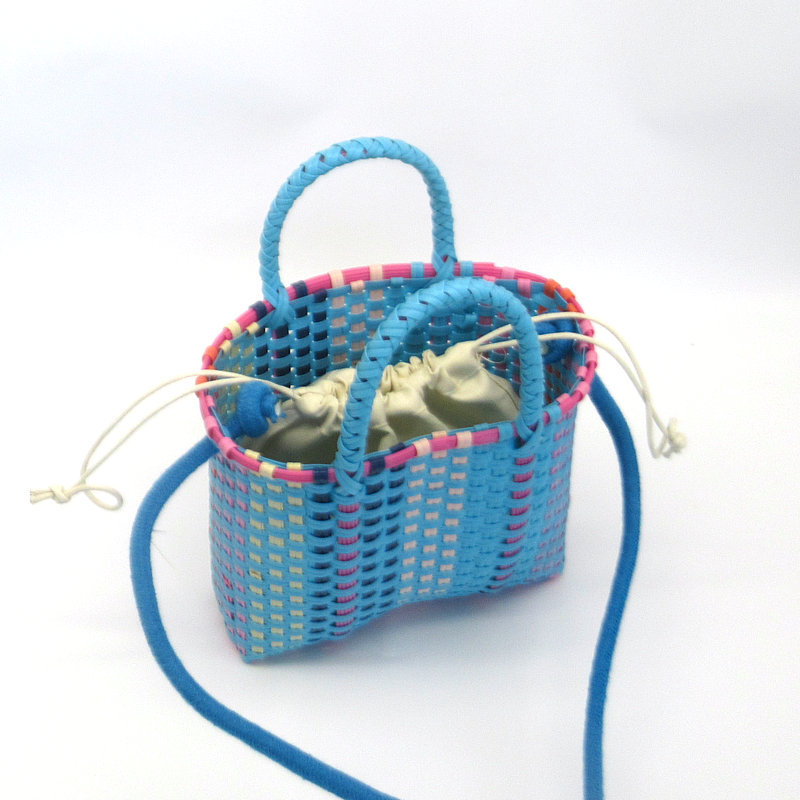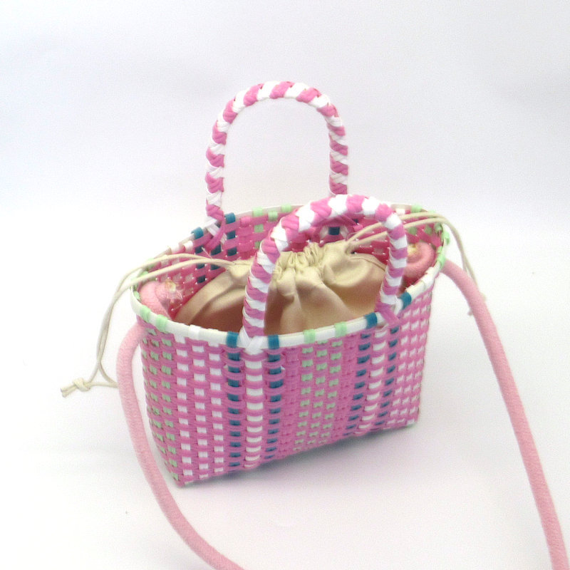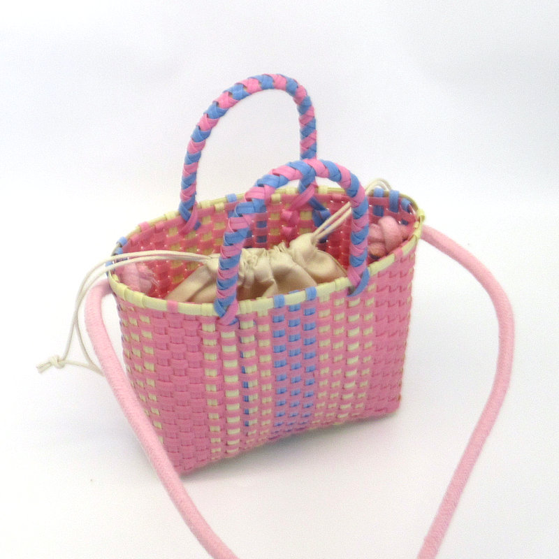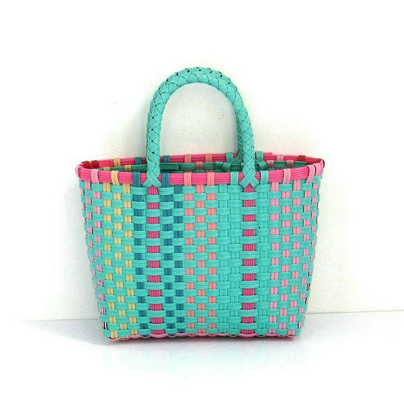 新款塑料条编织小童篮,可加肩带,加布艺内袋