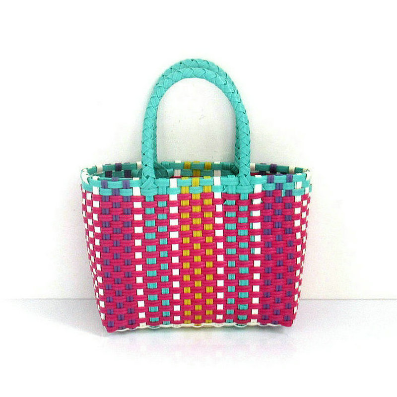 새로운 스몰 사이즈 짠 가방 다채로운 플라스틱 스트립 작은 사각형 가방 동전 지갑 귀여운 작은 가방 여름 비치 가방 크로스 바디 가방