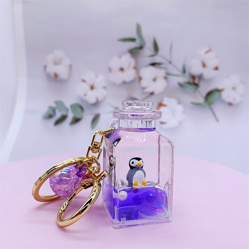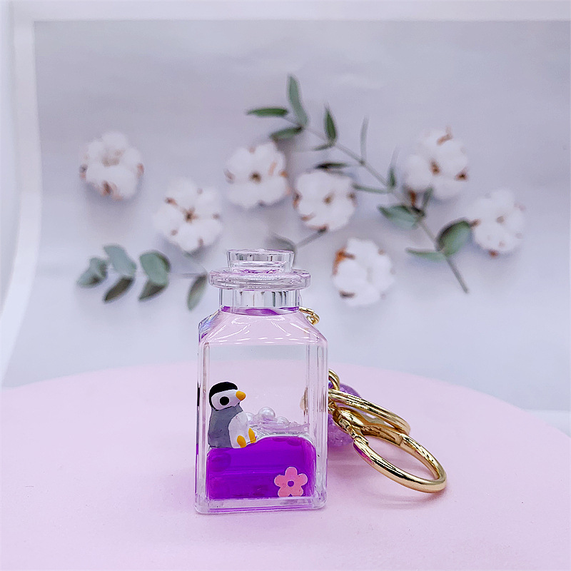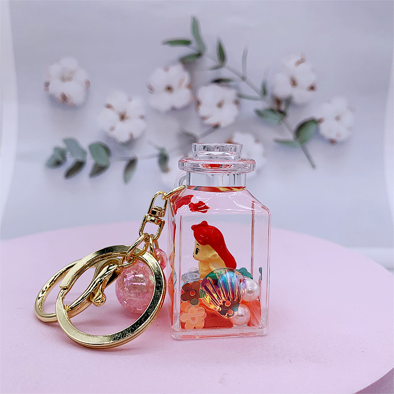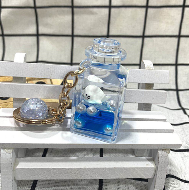 귀여운 바다 인형 오일 액체 키체인 소녀 감성 흐르는 모래 유리병 향수병 펜던트 스트레스 해소
