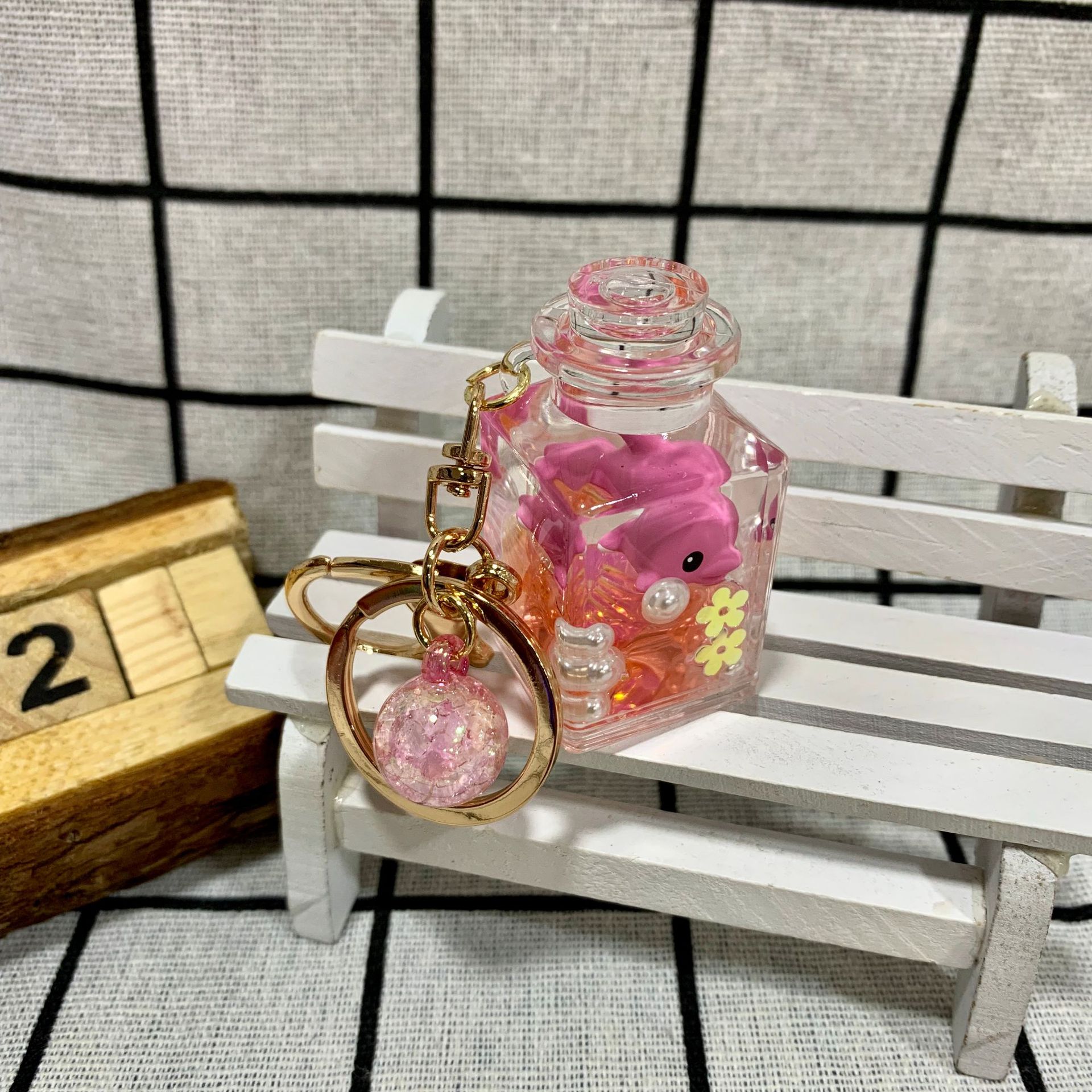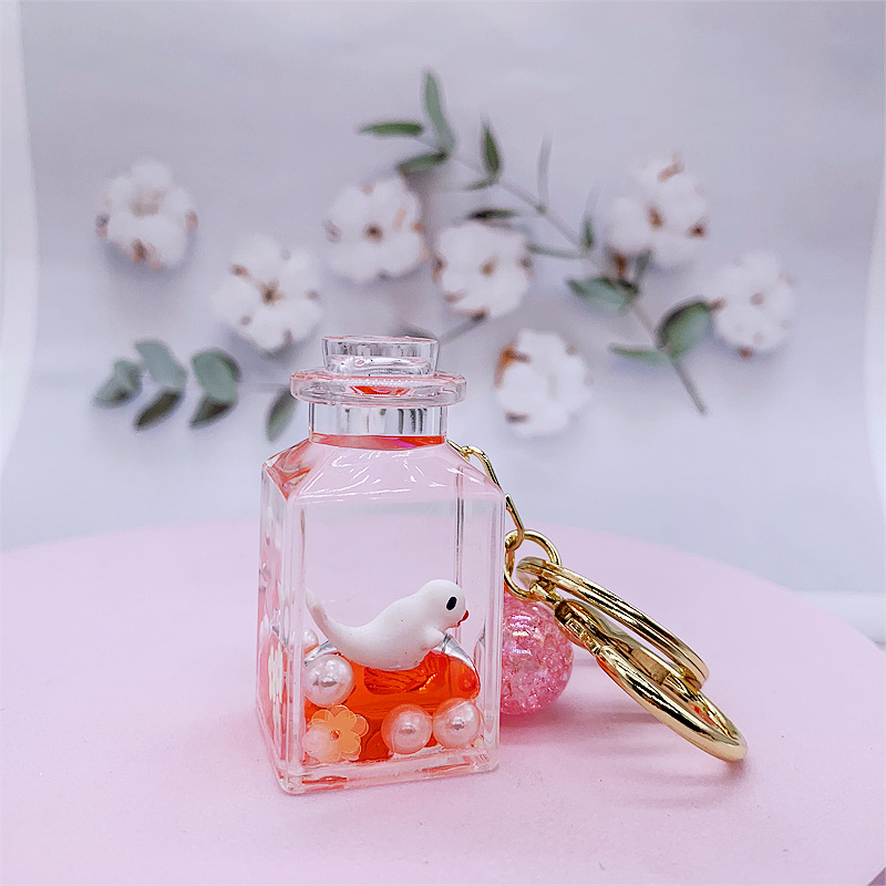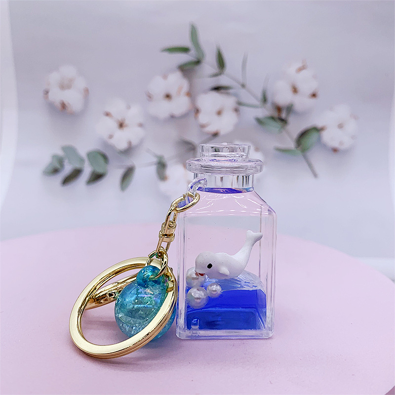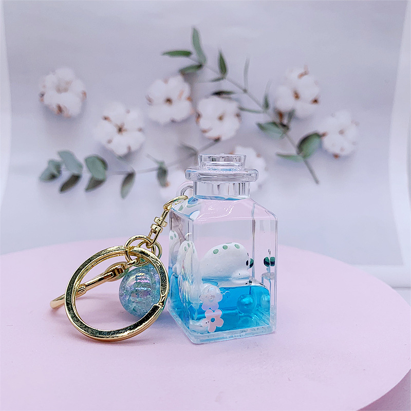 귀여운 바다 인형 오일 액체 키체인 소녀 감성 흐르는 모래 유리병 향수병 펜던트 스트레스 해소스토어 가기