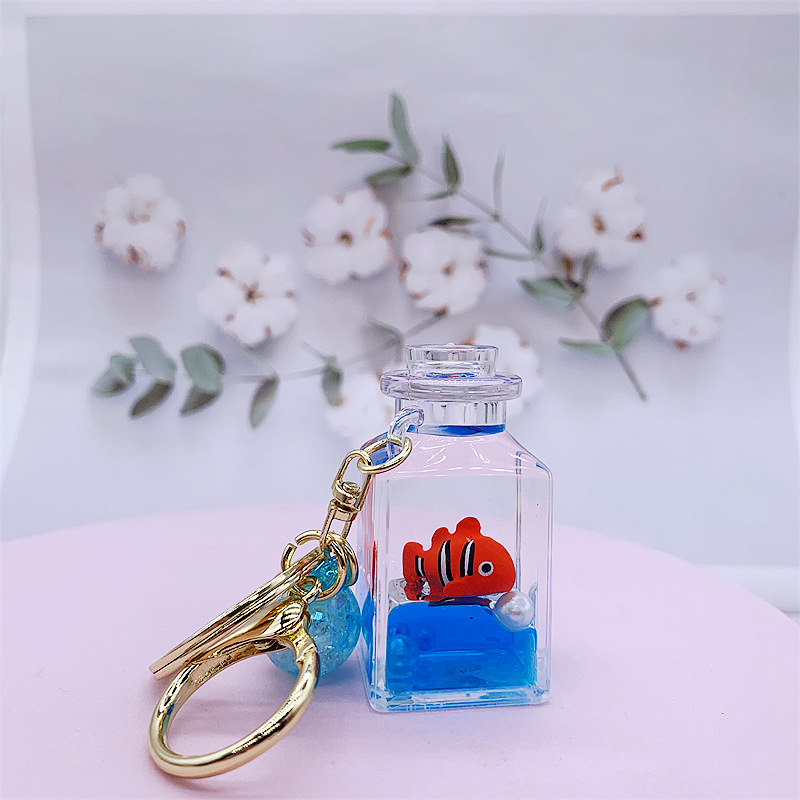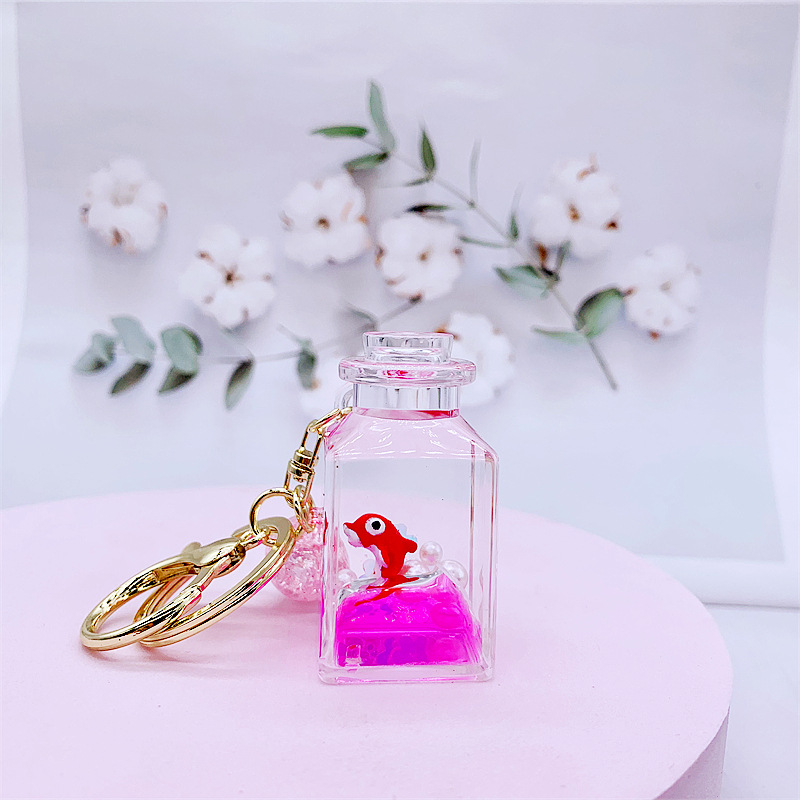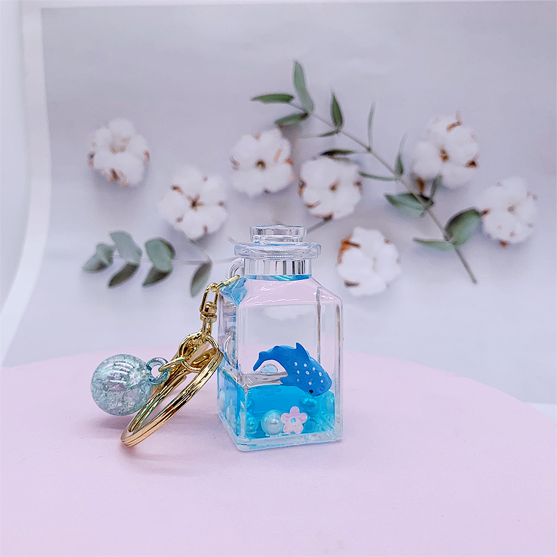 新款创意入油漂浮海洋生物海底世界 时尚亚克力亮片漂浮瓶包包挂件 汽车挂件