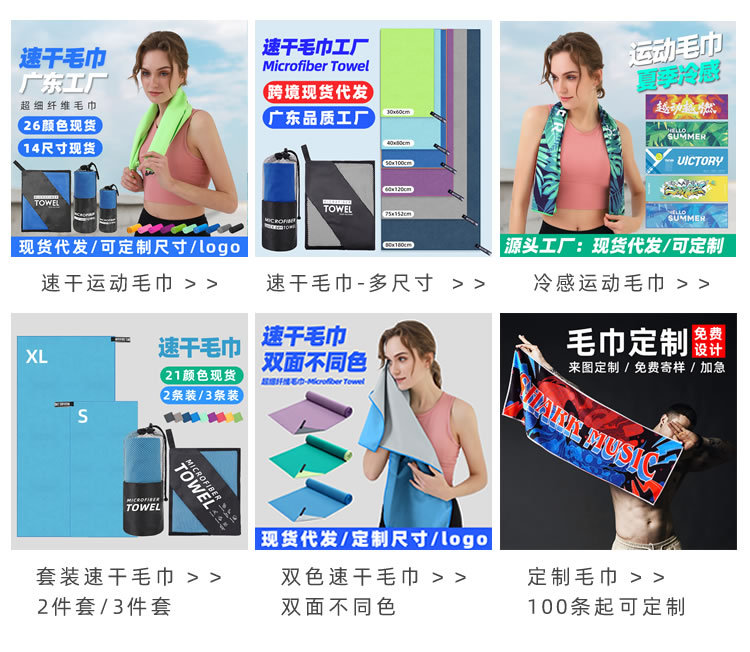 我厂专业生产各类运动毛巾、印花毛巾、速干毛巾