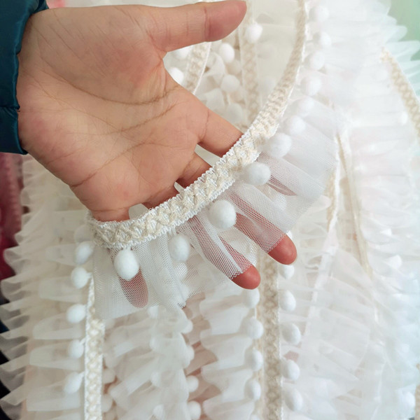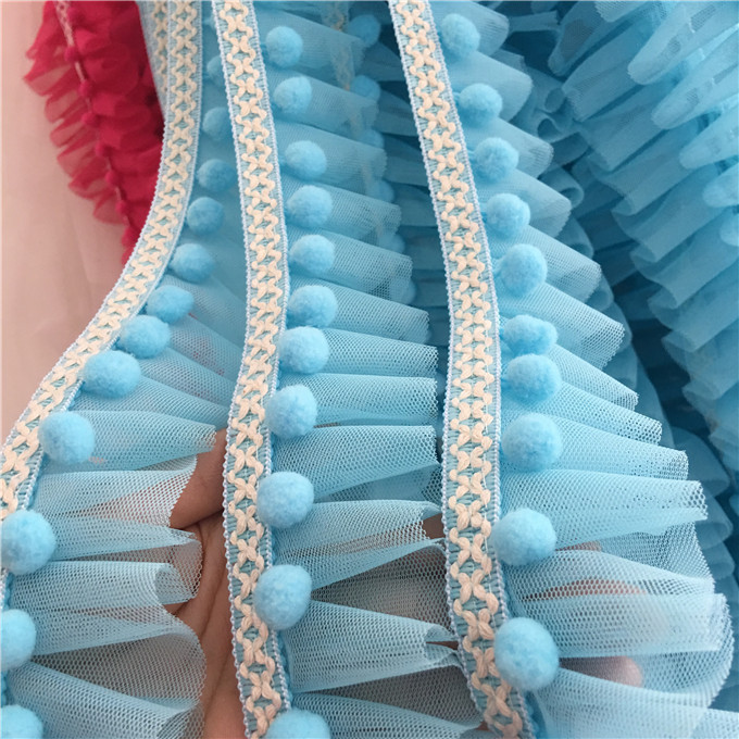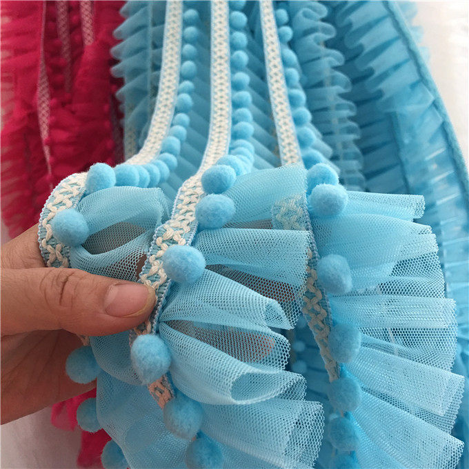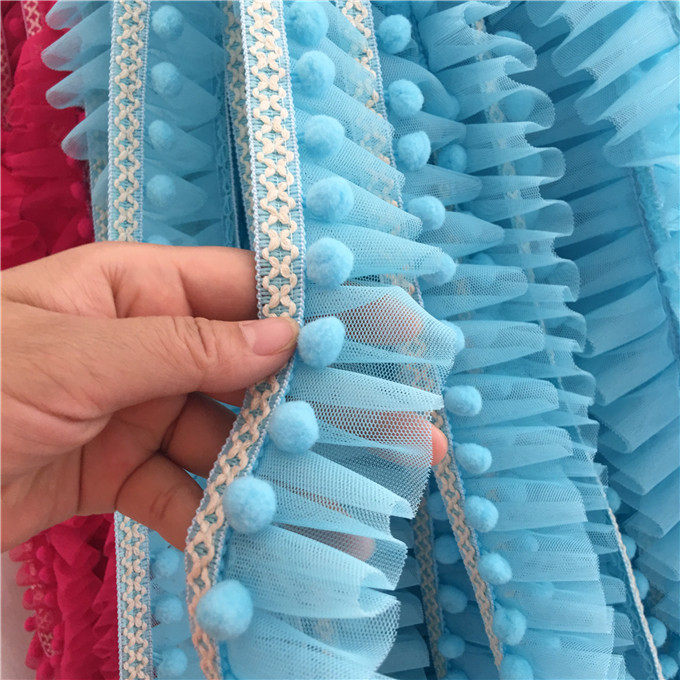 다채로운 색상의 공주풍 퍼프볼 레이스 메쉬 입체 주름 커튼, 침대 커튼, 침구류, 의류, 수제 레이스 장식 소품