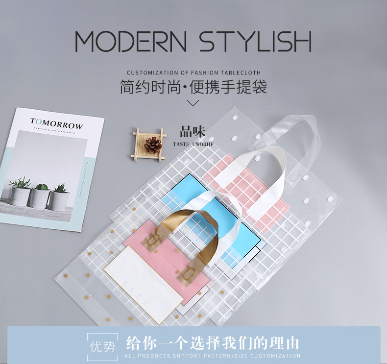 신투명 두꺼운 핸드백 선물 쇼핑 포장 가방 워시 화장품 의류 매장 가방 인쇄 로고