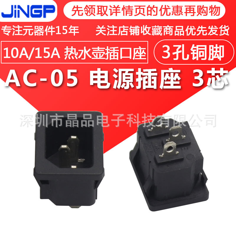 AC-05 임베디드 버클 카드형 전원 소켓 핀 모양 수 소켓 3 홀 전원 소켓 10A250V 섀시 소켓