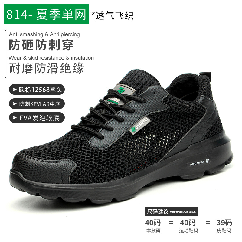 跨境杰孚劳保鞋男夏季轻便透气防臭飞织网面防砸防刺穿绝缘安全鞋