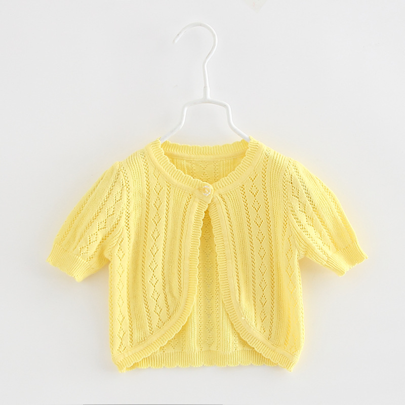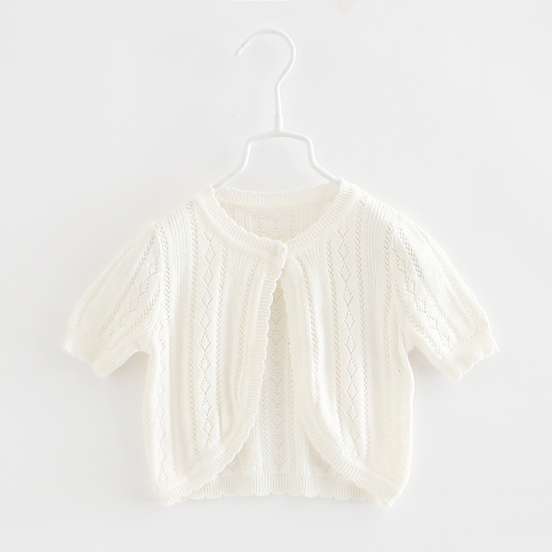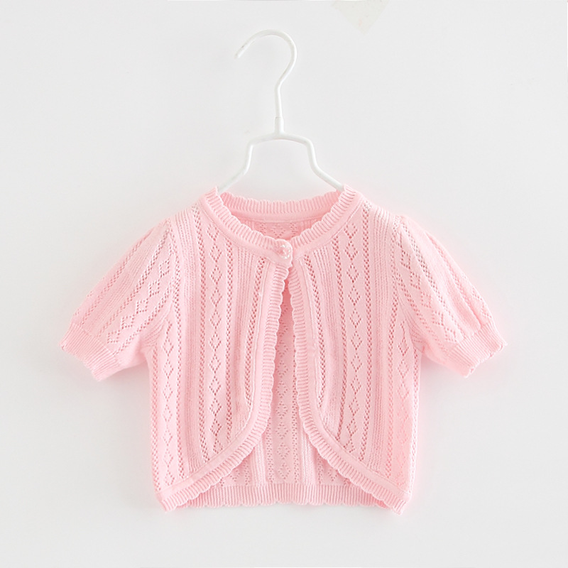 큰 아이들을 위한 원버튼 여아 니트 가디건, 반팔 아우터, 중소형 아동용 숄, 에어컨 코트, 얇은 여름옷스토어 가기