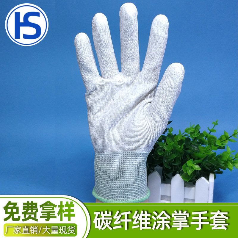 탄소 섬유 팜 코팅 장갑 13 핀 접착제 미끄럼 방지 장갑 전자 공장 직업 보호 장갑 PU 코팅 장갑