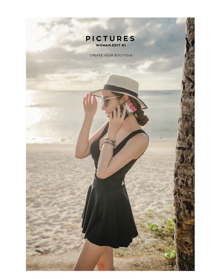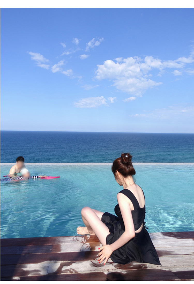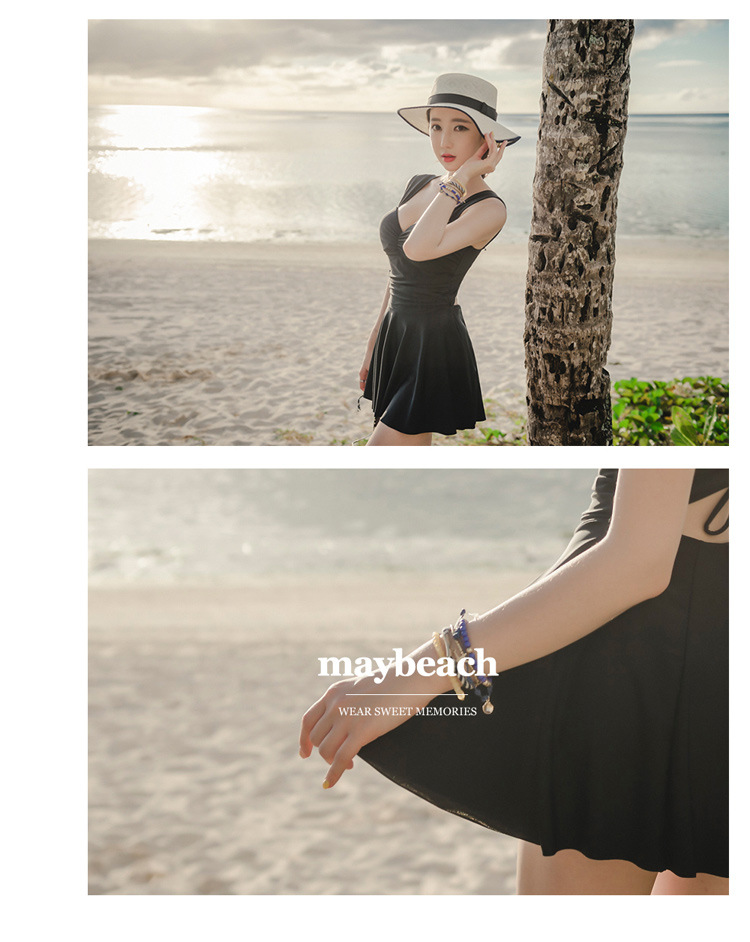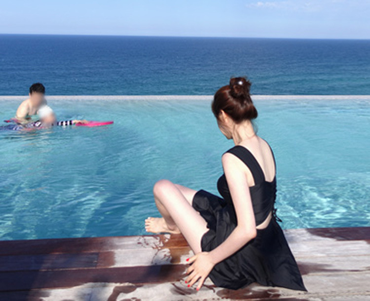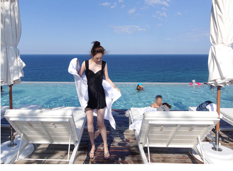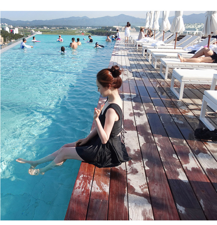 온천용 큰 가슴도 작아보이는 수영복, 스틸링이 있는 보수적인 분리형 스커트 스타일 수영복, 슬림한 스포츠 스타일