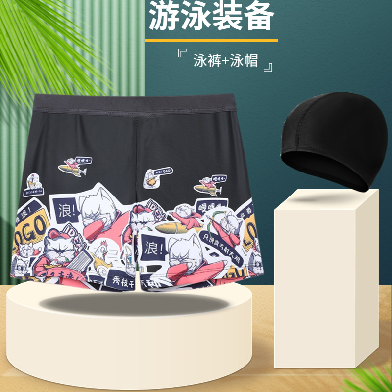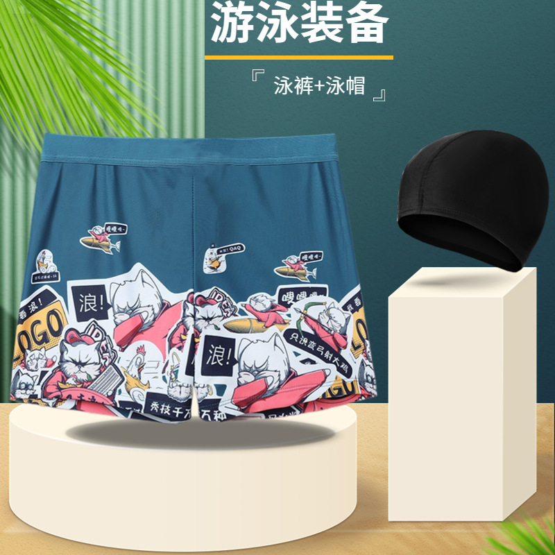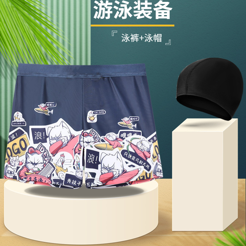 남자의 수영 트렁크 뚱뚱한 남자 패션 복서 섹시 느슨한 멀티 컬러 옵션 남자의 수영 세트 수영 모자 온천 도매