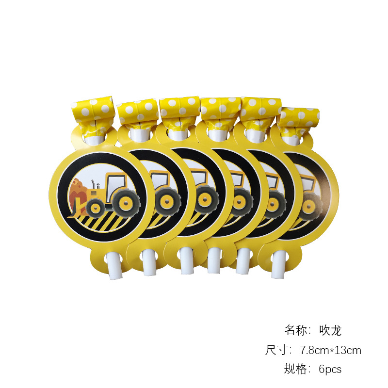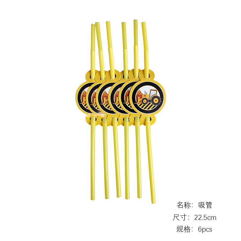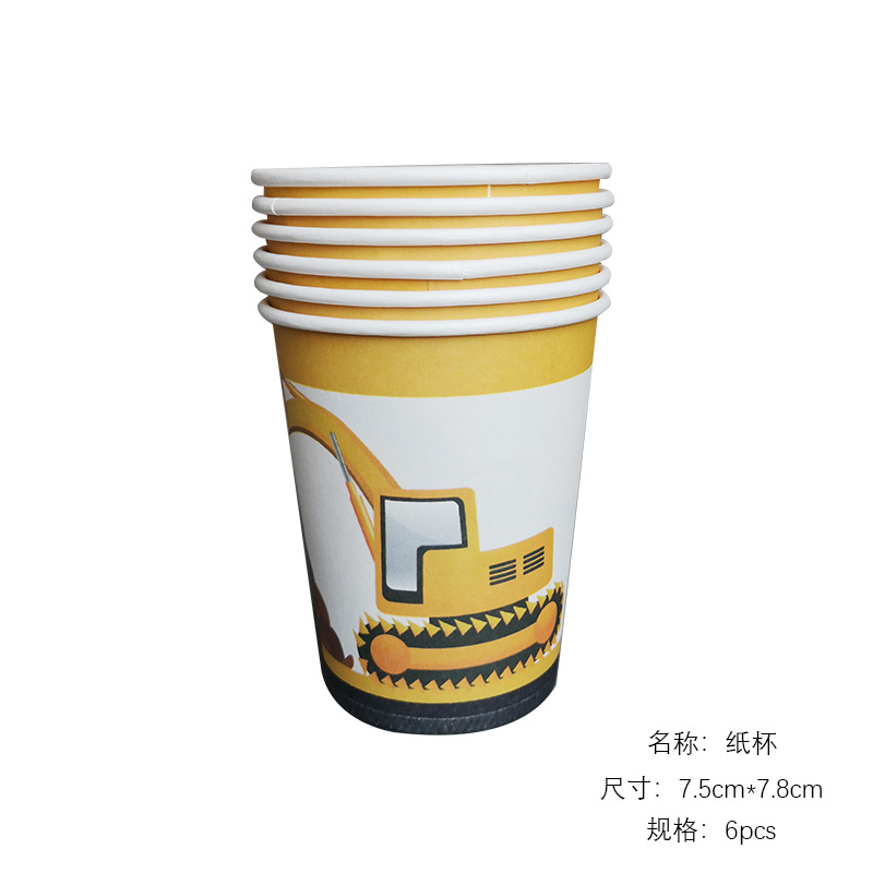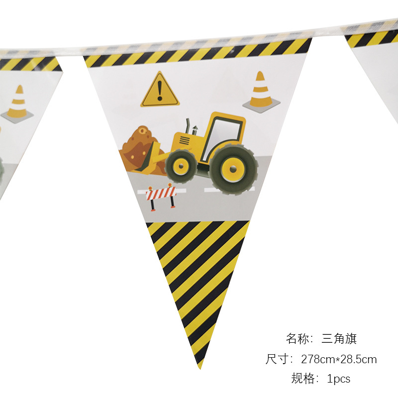 건설 차량 굴삭기 건설 노동자 어린이 테마 생일 파티 레이아웃 장식 종이 컵 접시 깃발 식탁보