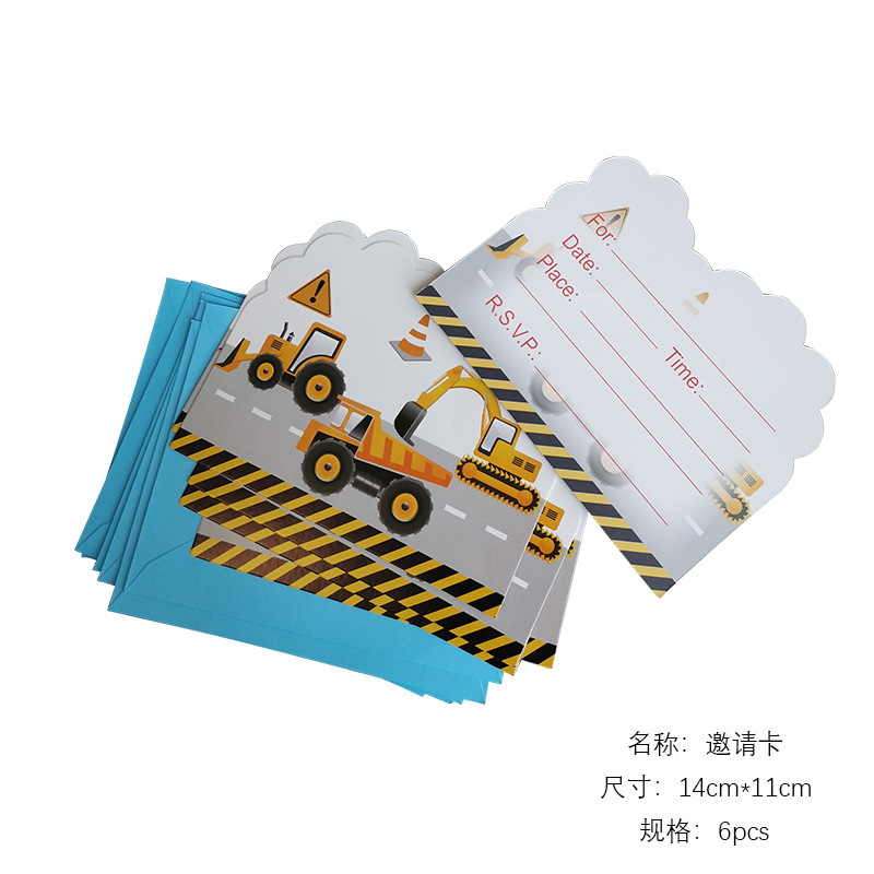 건설 차량 굴삭기 건설 노동자 어린이 테마 생일 파티 레이아웃 장식 종이 컵 접시 깃발 식탁보스토어 가기