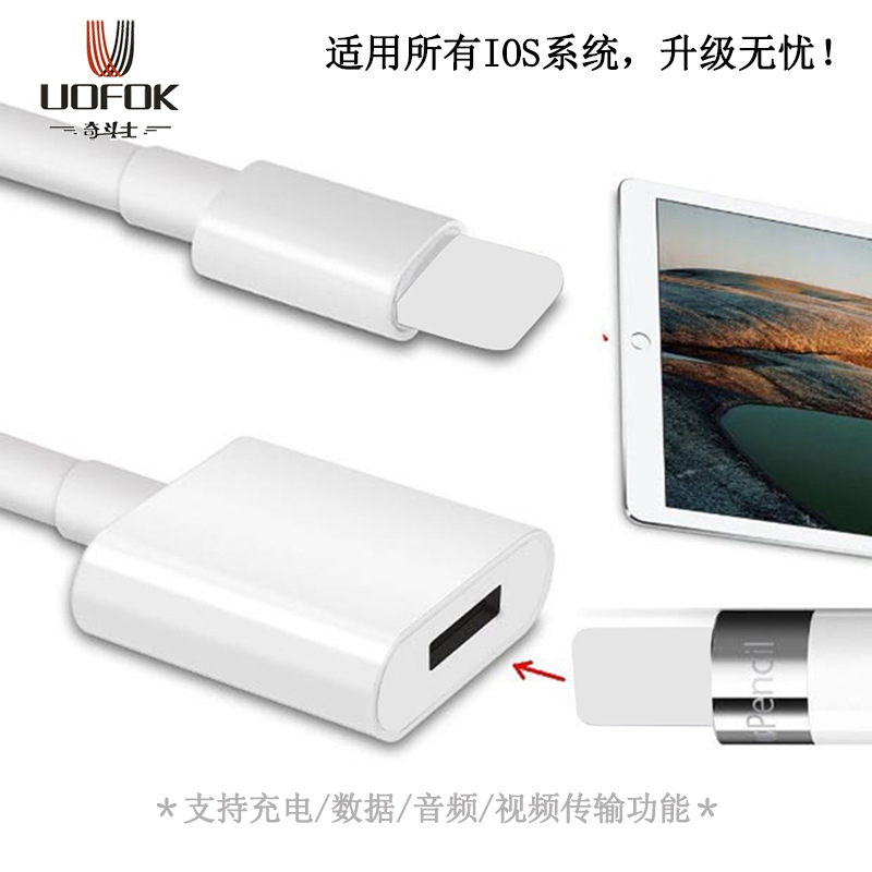 跨境 适用苹果Pencil电容笔铅笔USB转lightning母延长线 充电线