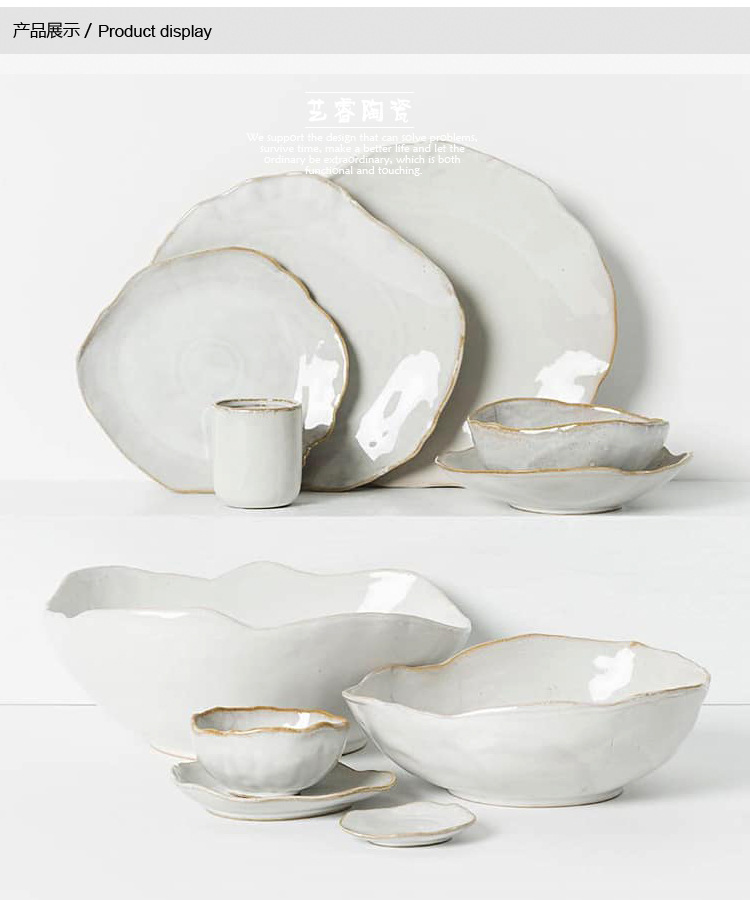 호텔 레스토랑 접시, 가정용 세라믹 불규칙 모양 밥그릇, 샐러드 그릇, 평평한 접시, 공장 직판, 북유럽 스타일스토어 가기