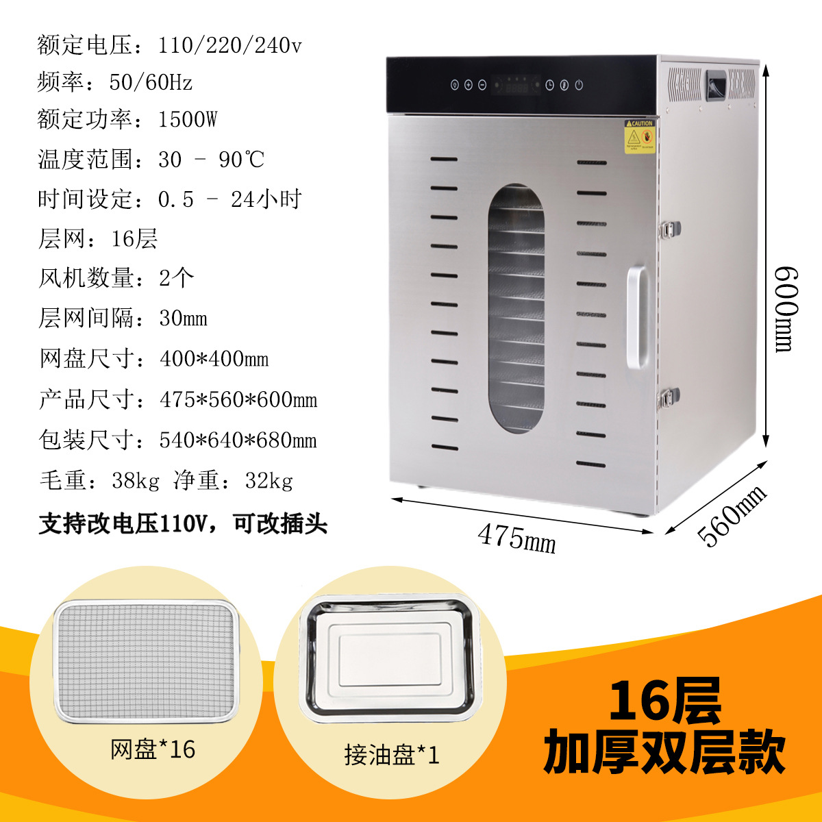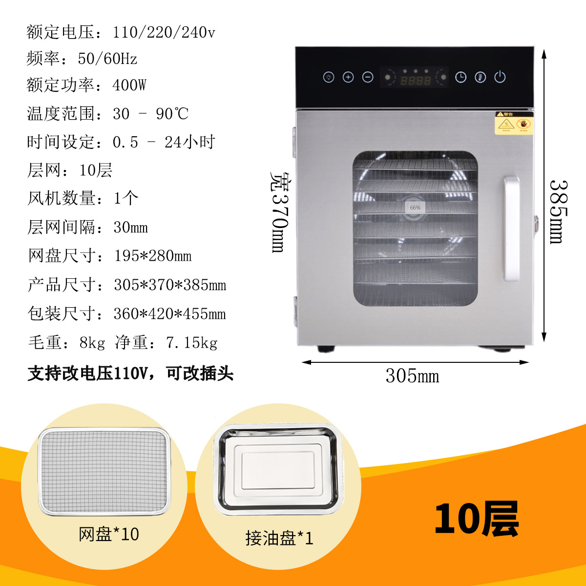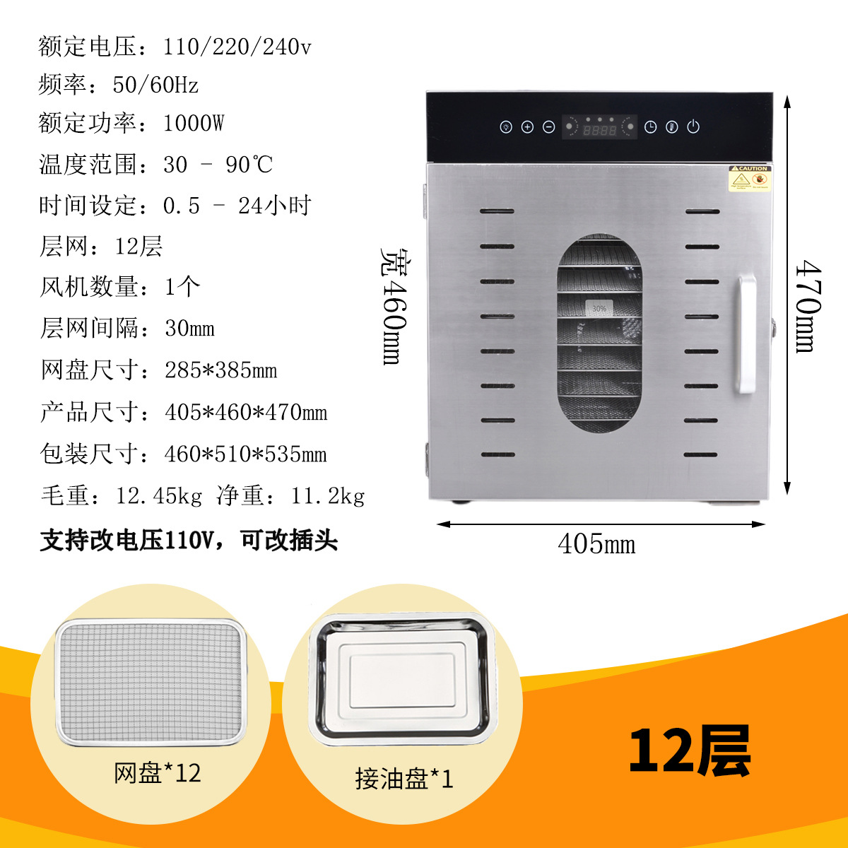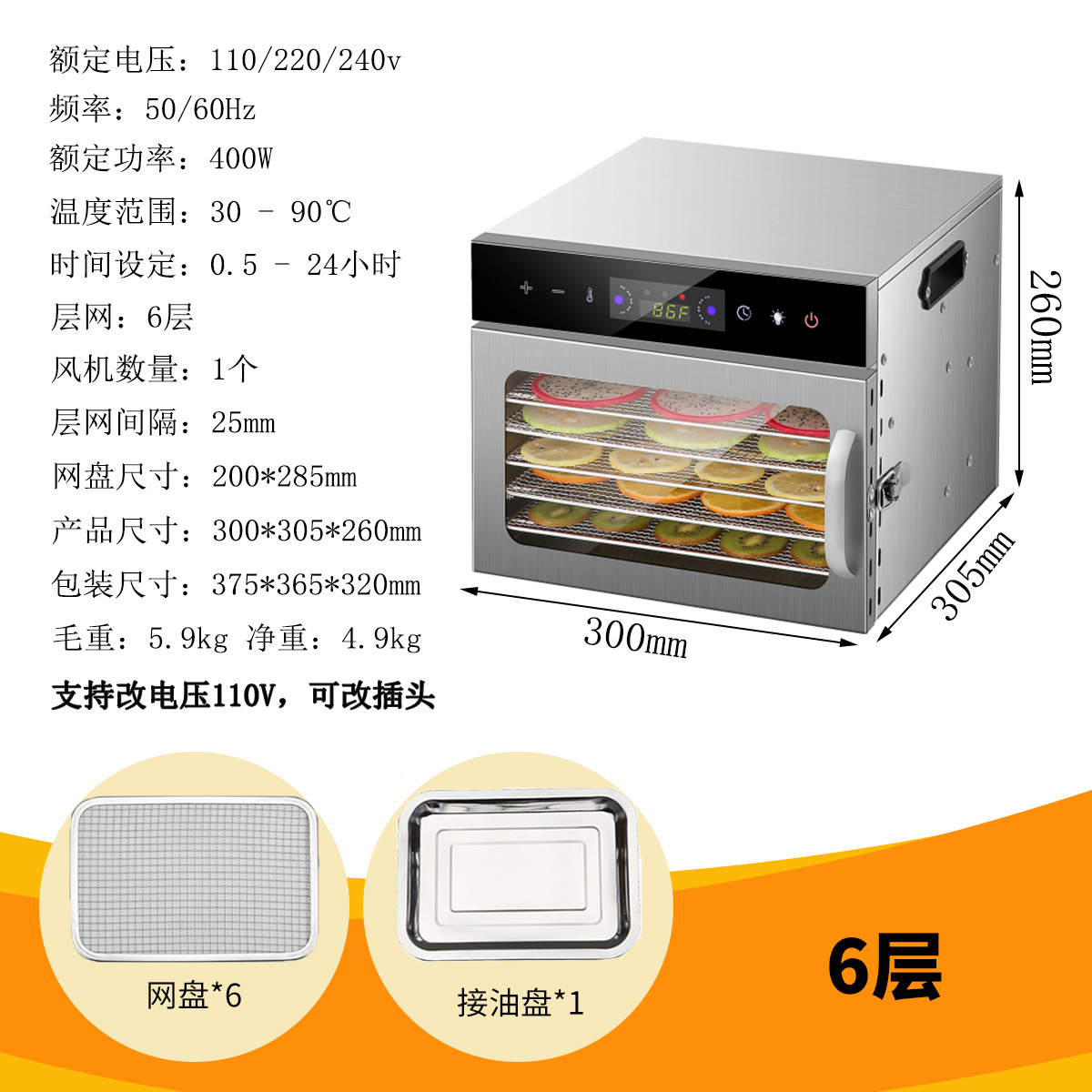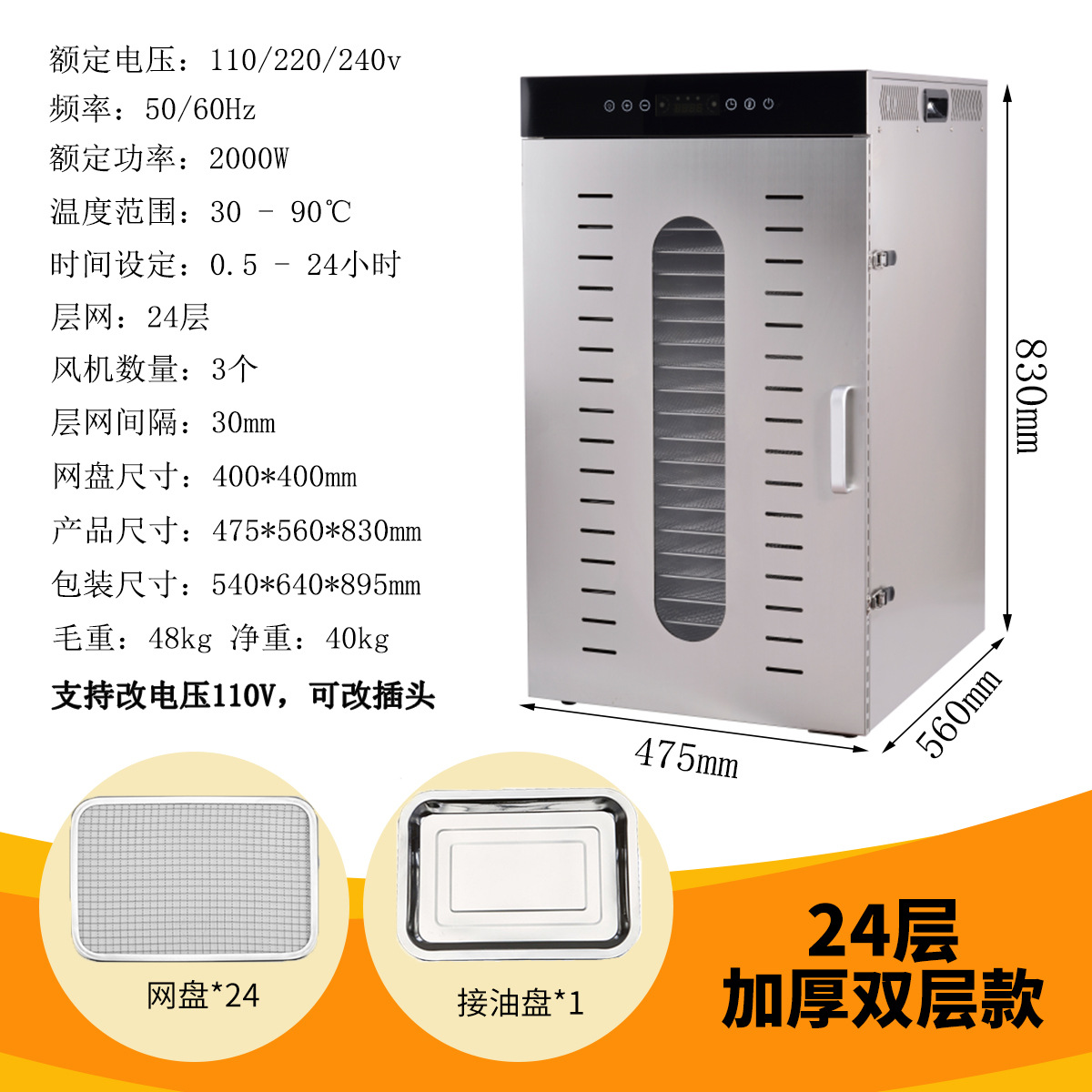 국경 간 스테인레스 스틸 건조 과일 기계 야채 과일 고기 스낵 공기 건조 탈수 식품 건조기 110V