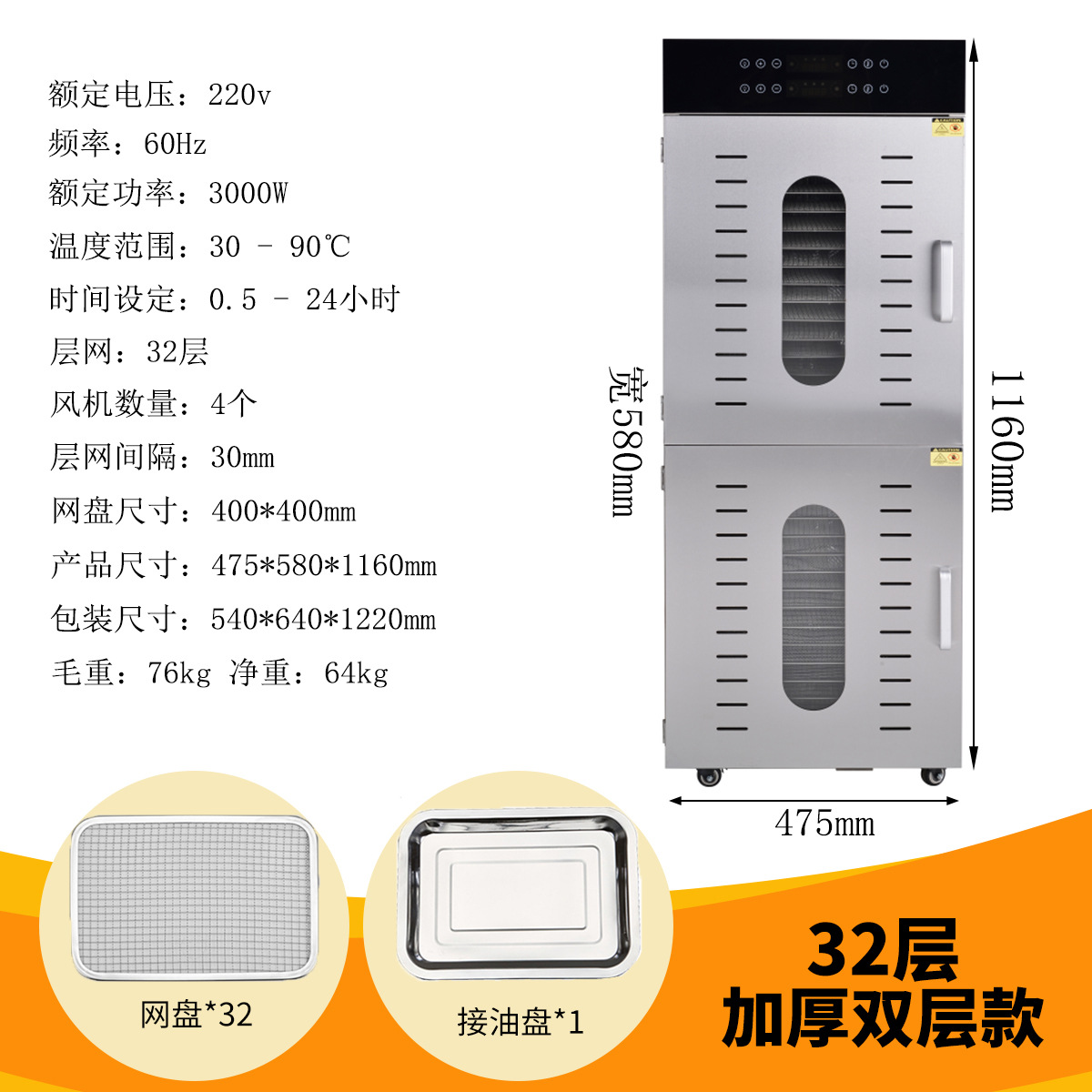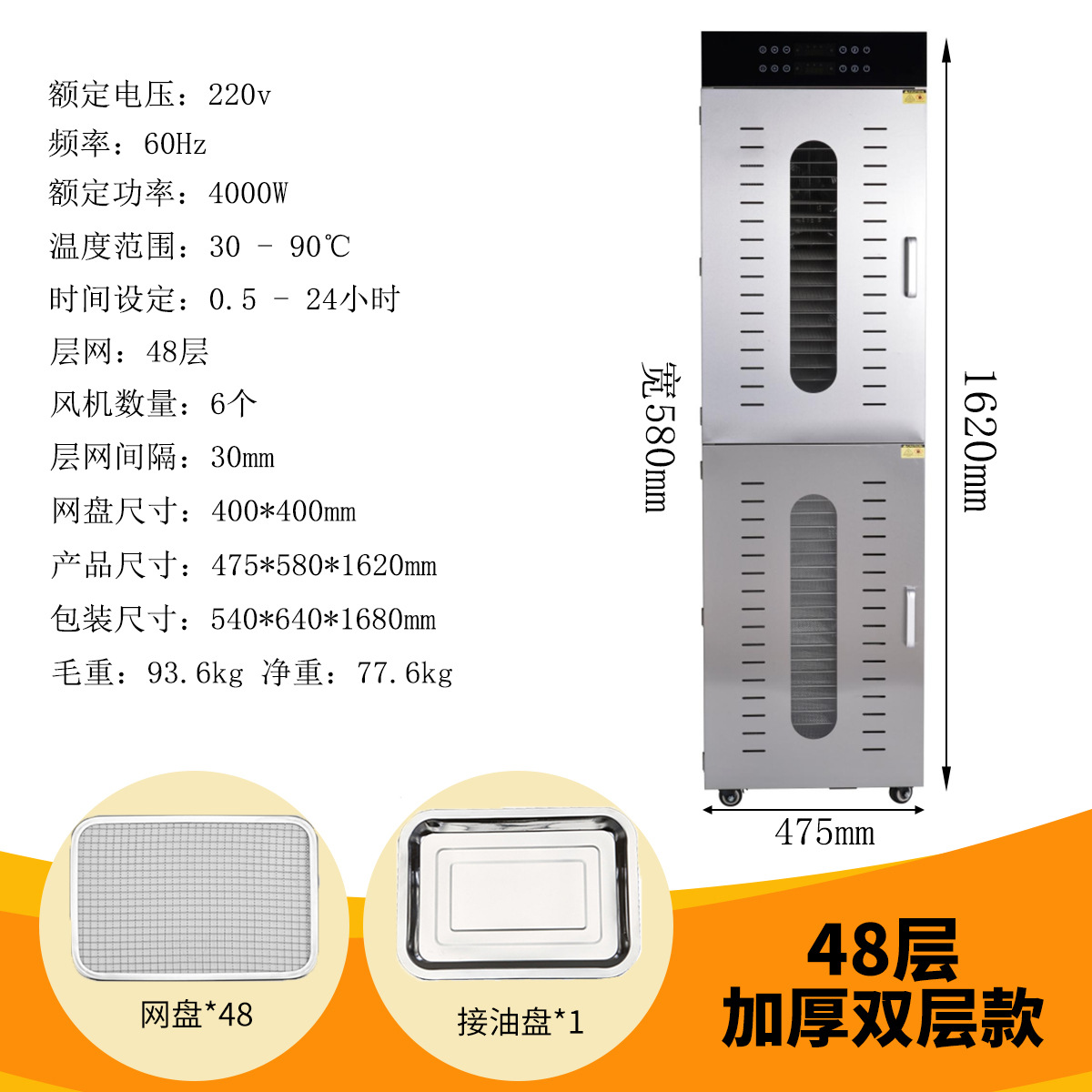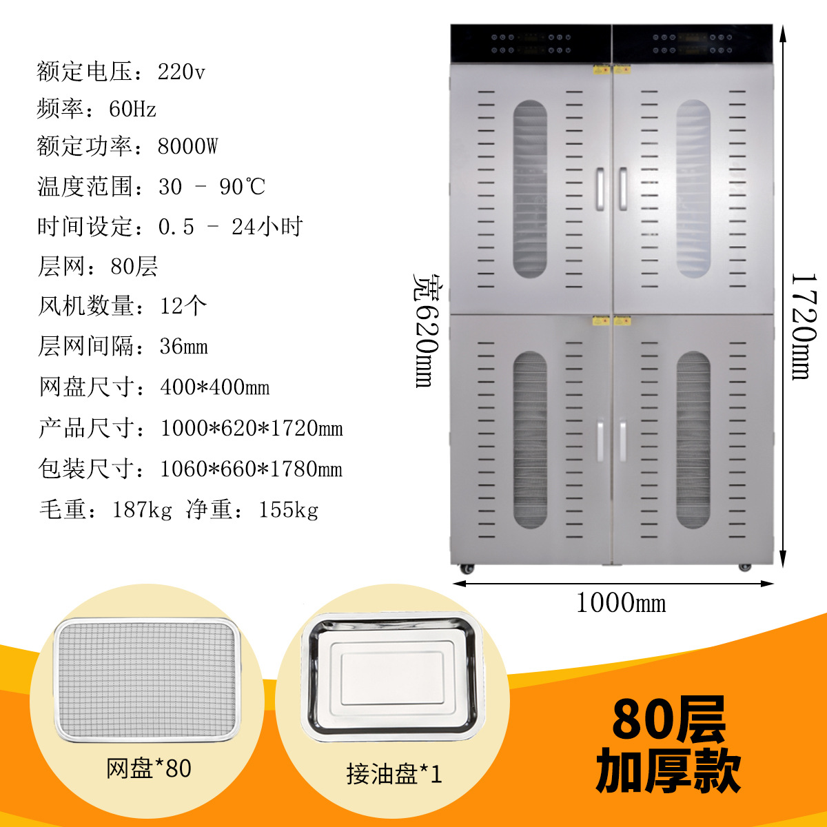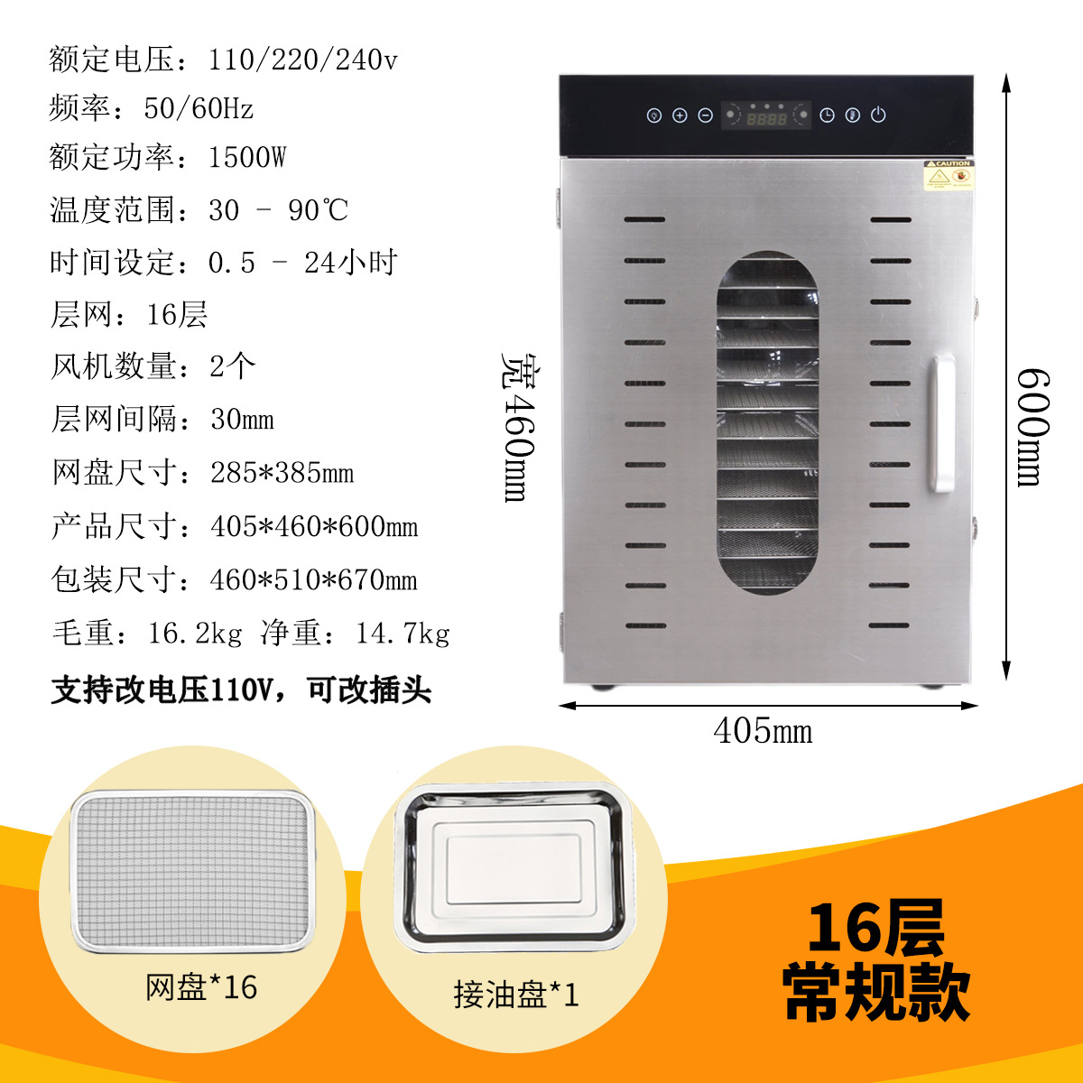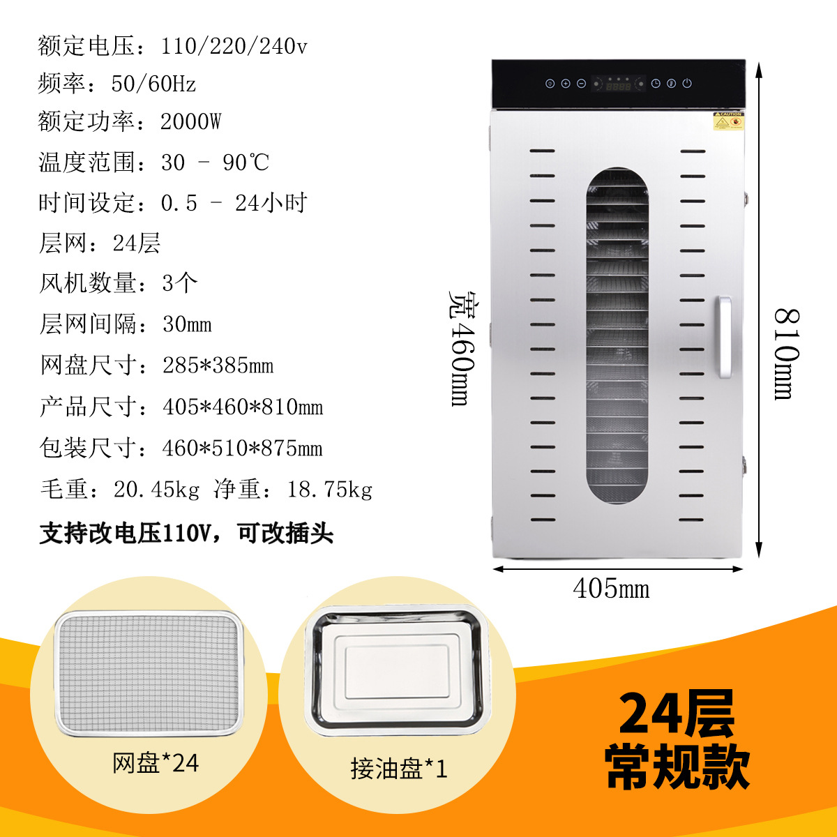 국경 간 스테인레스 스틸 건조 과일 기계 야채 과일 고기 스낵 공기 건조 탈수 식품 건조기 110V