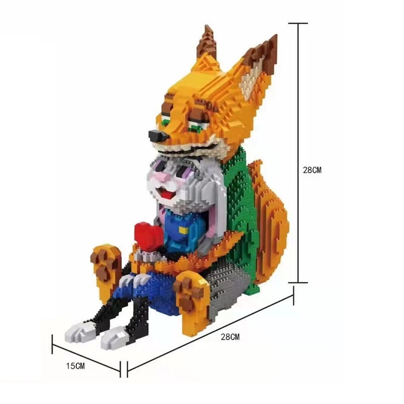 미친 동물 여우 보유 토끼 조립 빌딩 블록 감압 교육 완구 토끼 경찰관 장식품 여우 토끼스토어 가기
