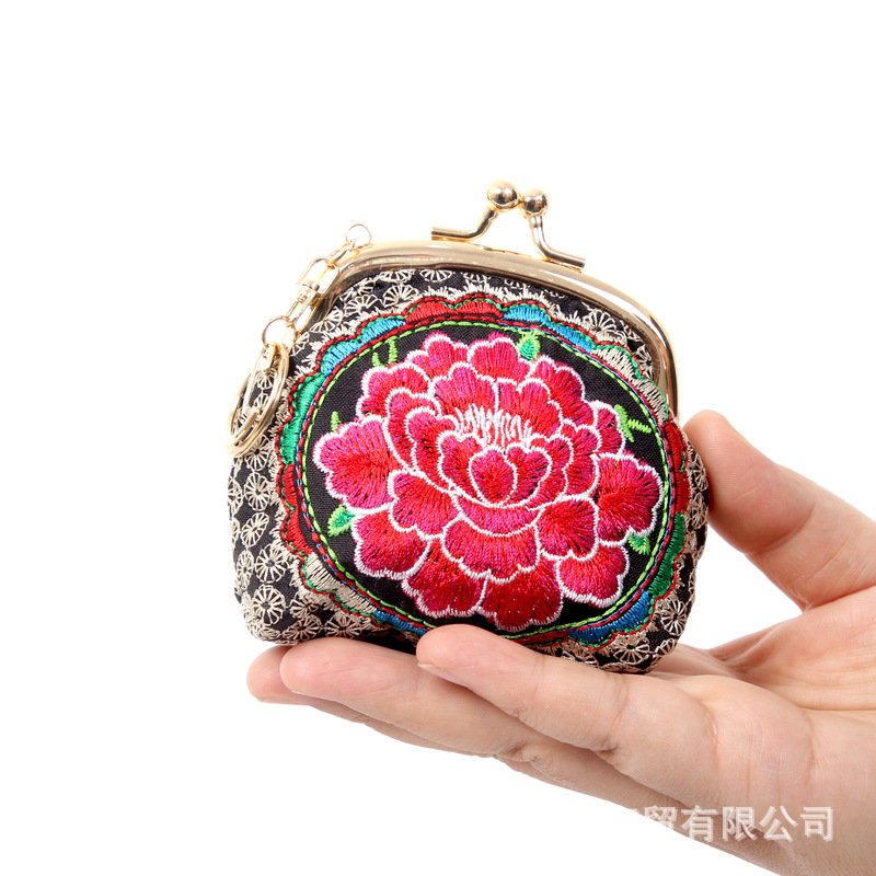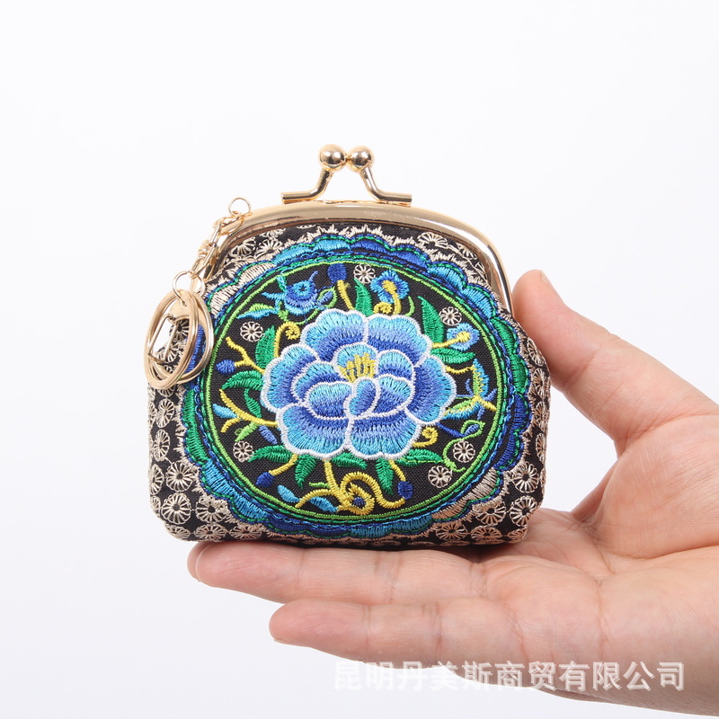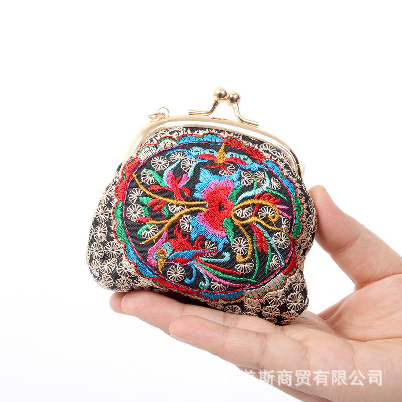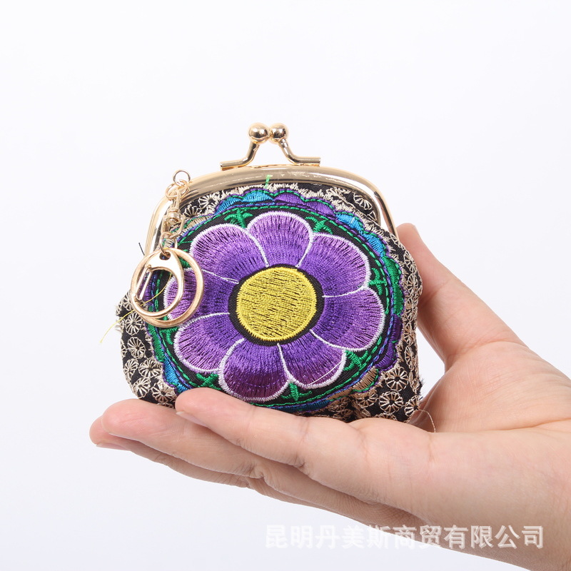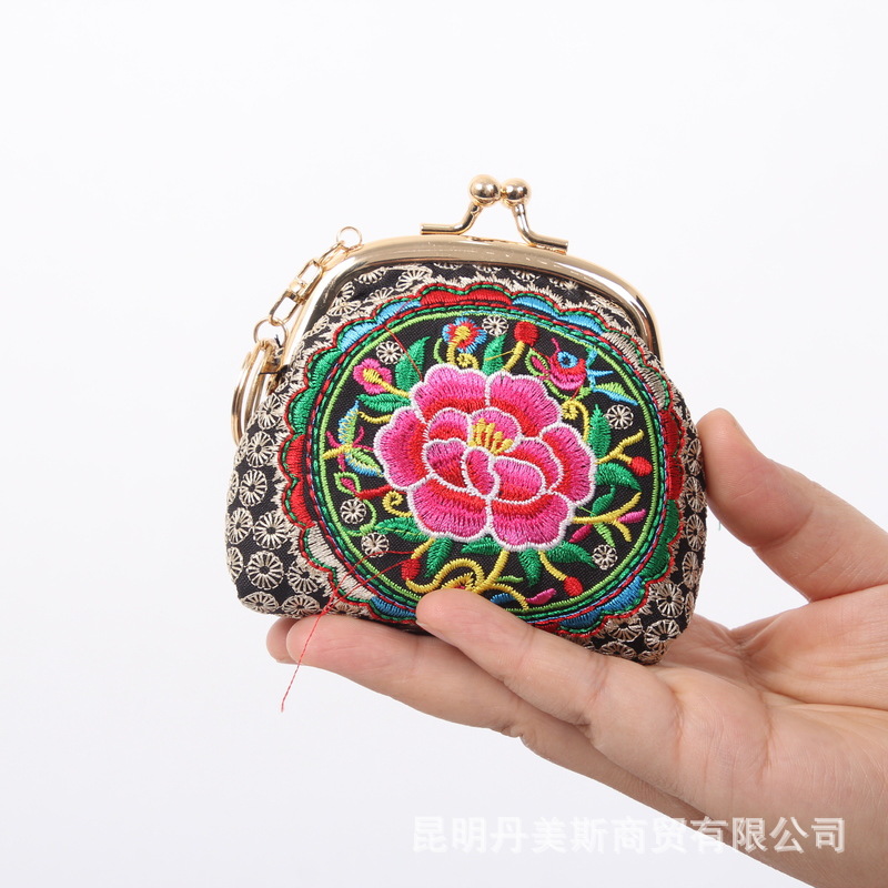 2024년 여름 신상품 에스닉 스타일 자수 지갑, 소형 미니 쉘백, 열쇠 동전 지갑, 수공예품스토어 가기