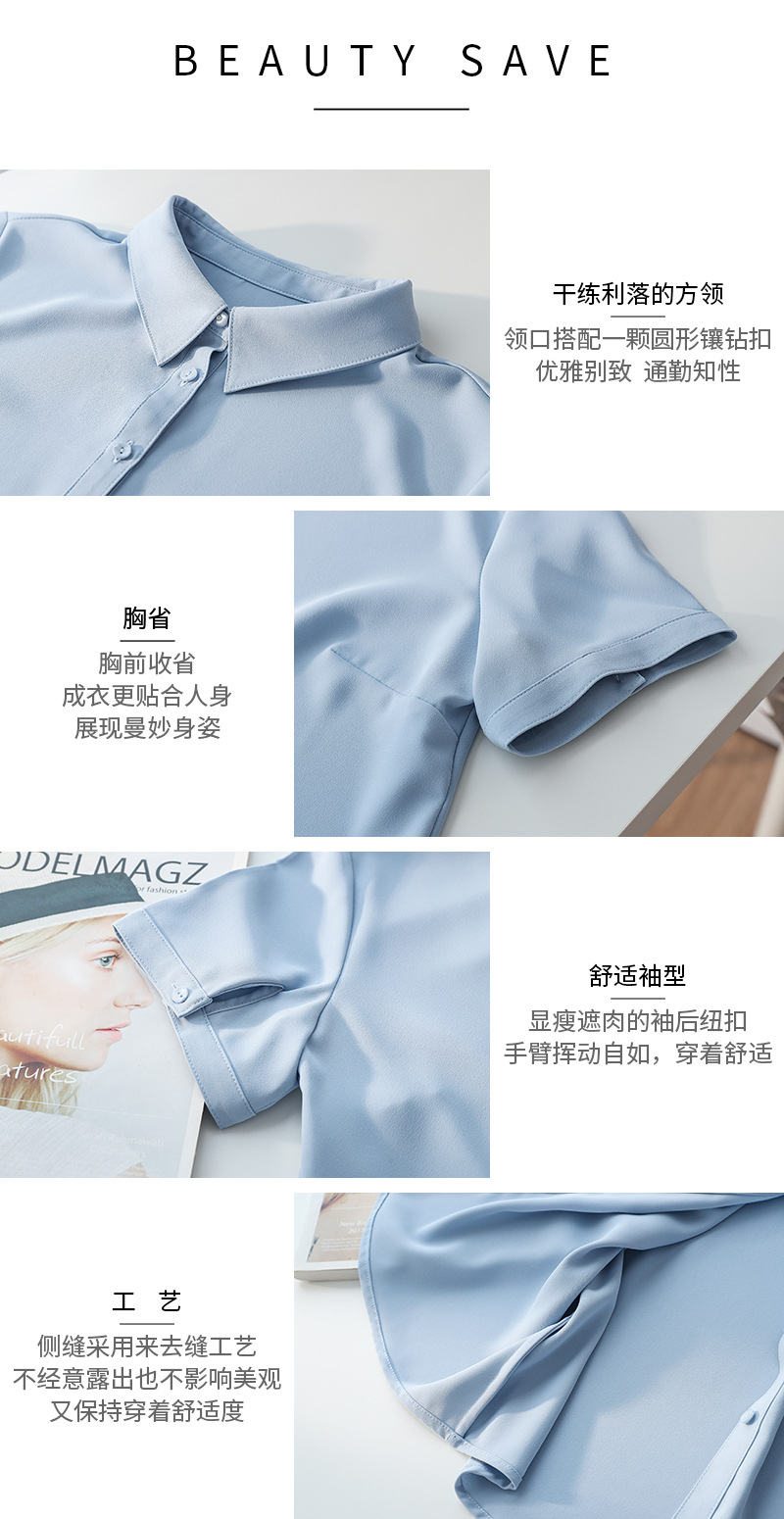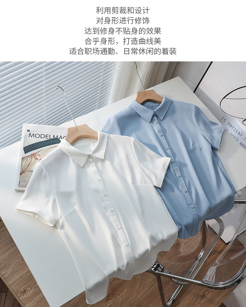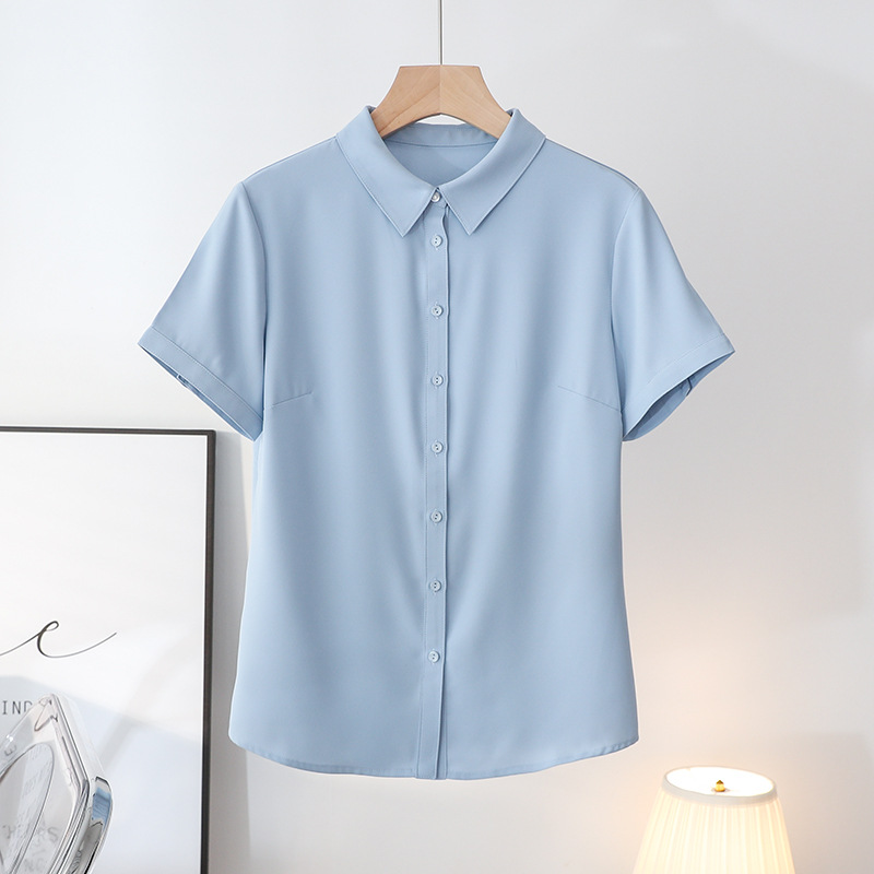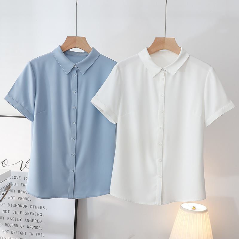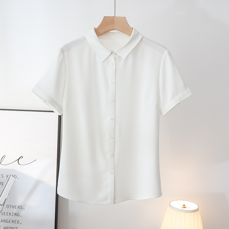 봄과 여름 통기성 Acetic Satin Chiffon 반팔 전문 여성 화이트 셔츠 기질 원피스 작업복 탑