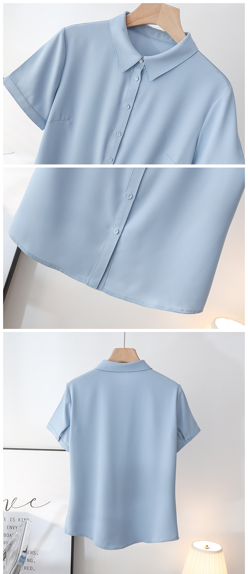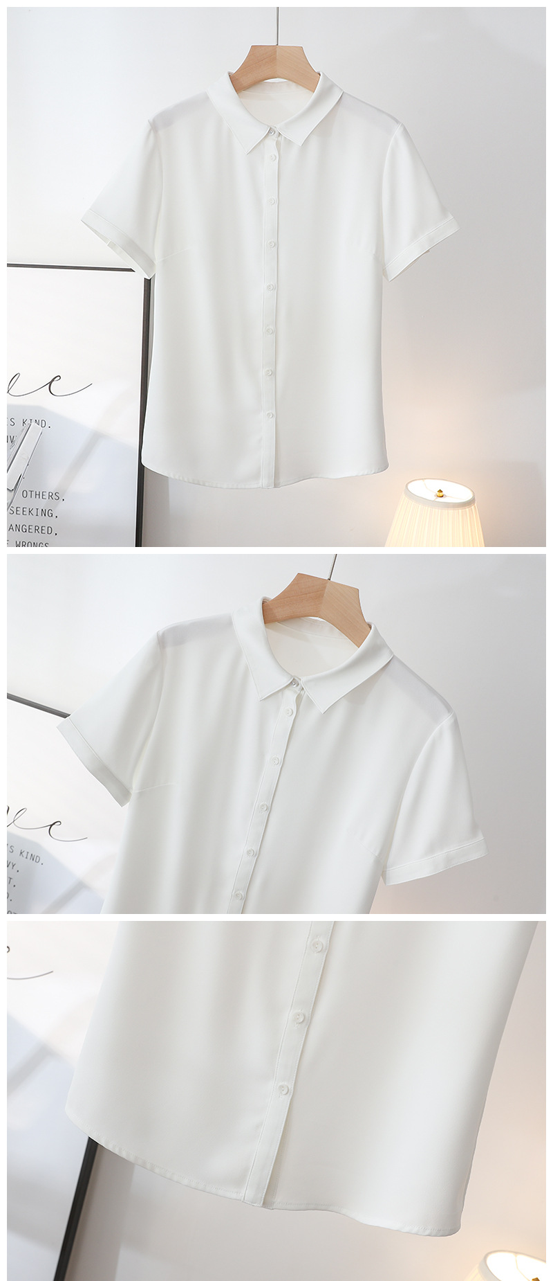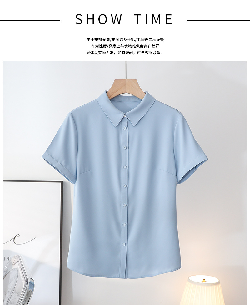 봄과 여름 통기성 Acetic Satin Chiffon 반팔 전문 여성 화이트 셔츠 기질 원피스 작업복 탑