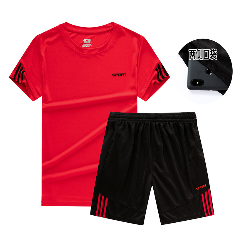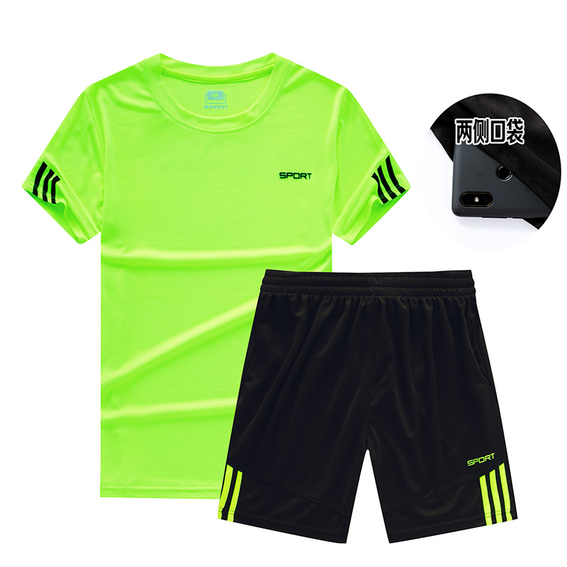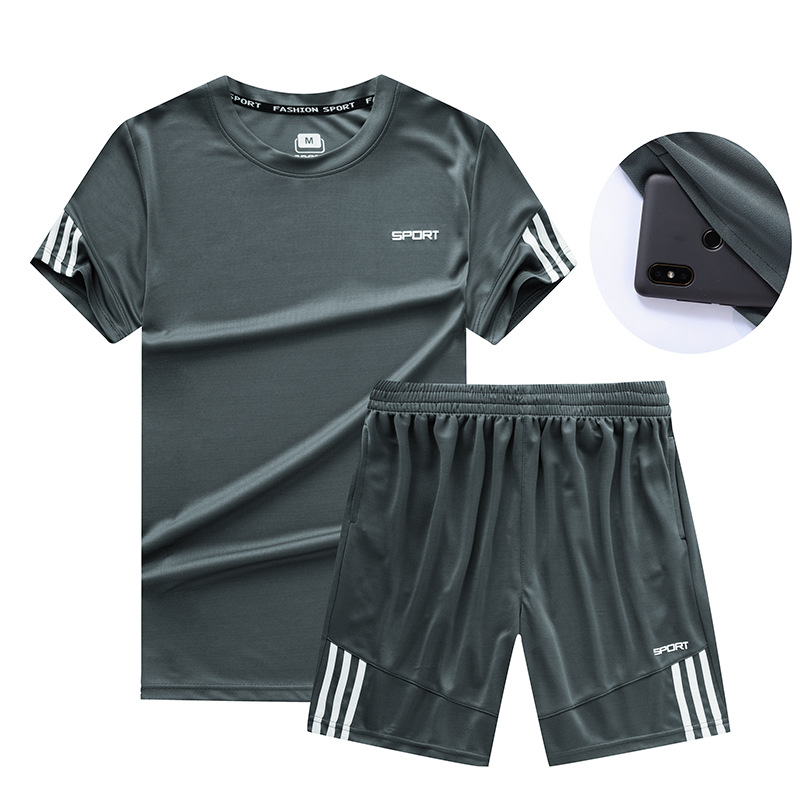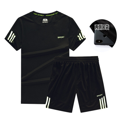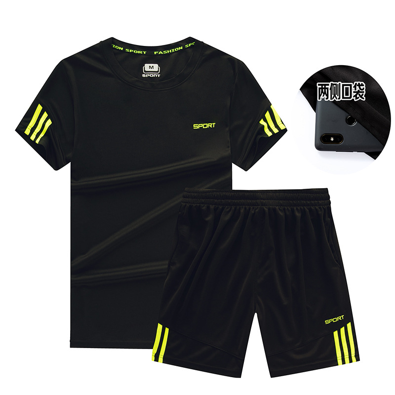 스포츠 세트 남자의 여름 그룹 사용자 정의 캐주얼 투피스 피트니스 세트 아침 실행 빠른 건조 옷 느슨한 반팔