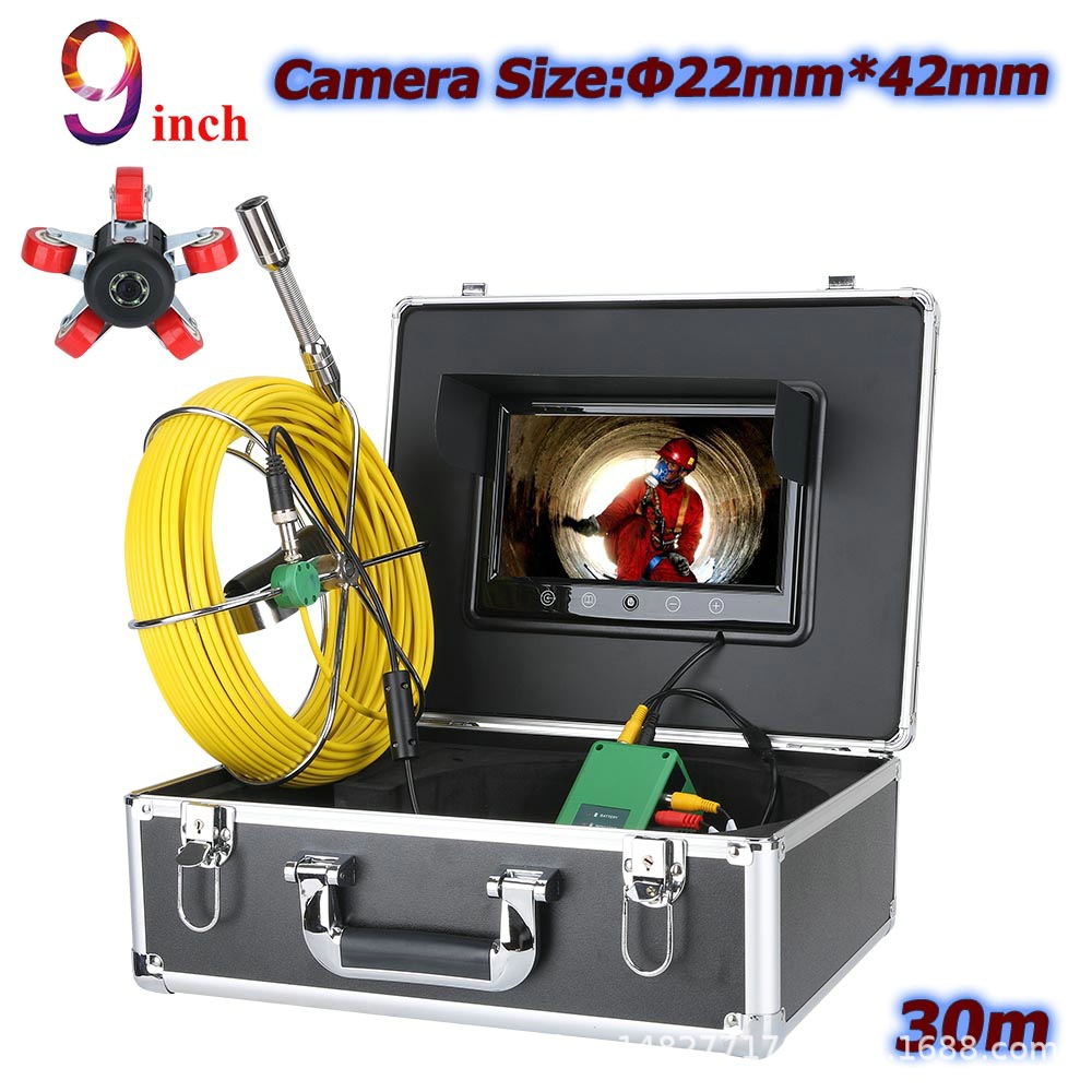 型号:F9719-30M 配置:9寸,直径22mm不锈钢探头,高清1000线 ,镜头角度145度,30米管道内窥镜,4500MA内置电池,带电量显示,6个白光灯亮度可调,带旋转配件与二个摄像头保护套。