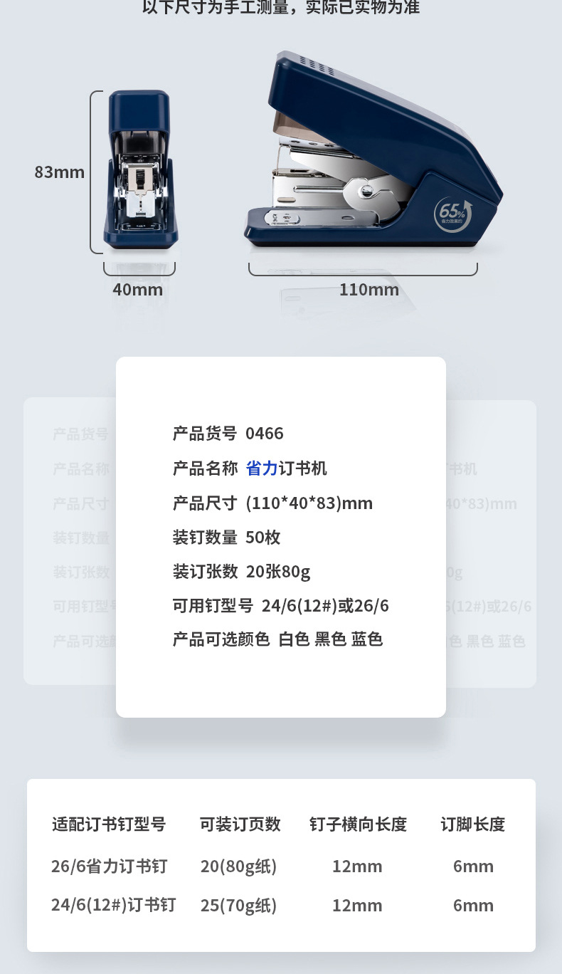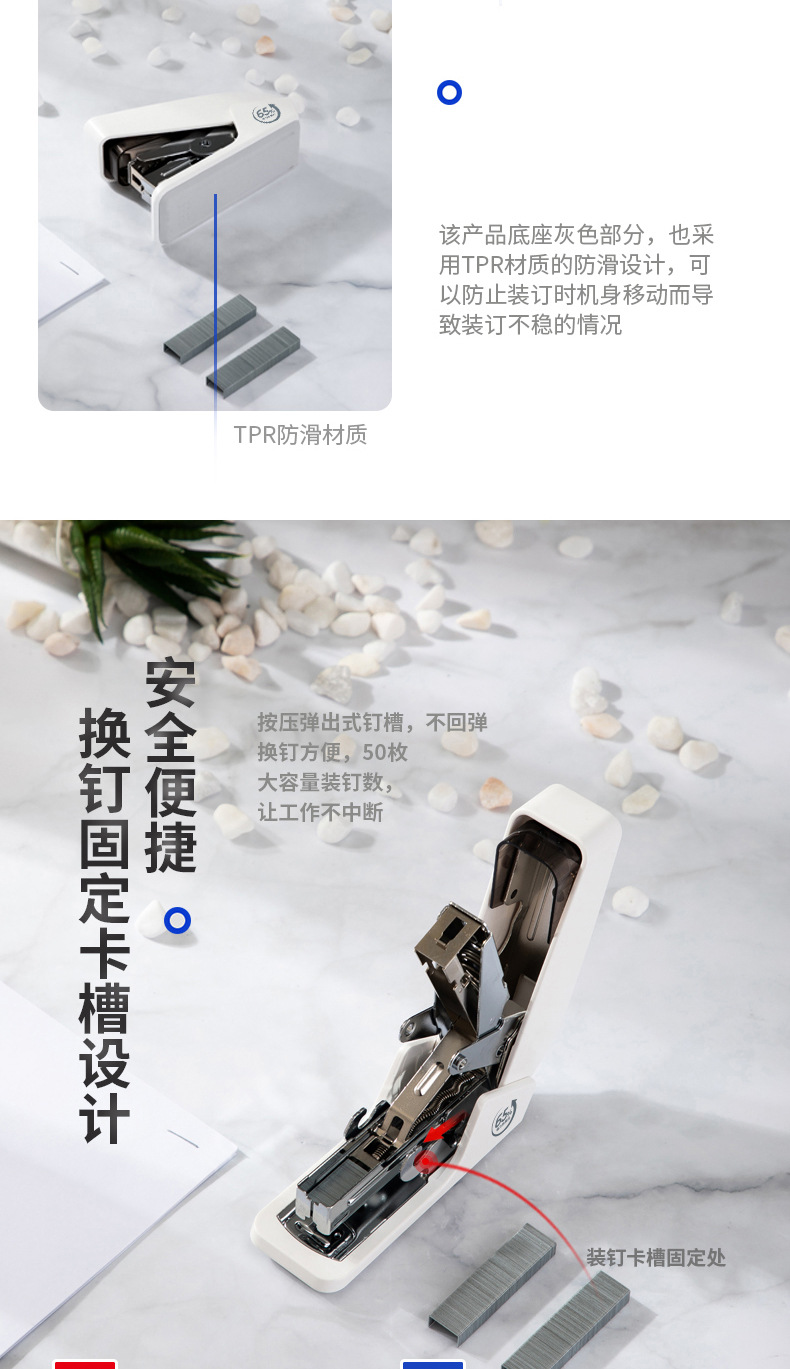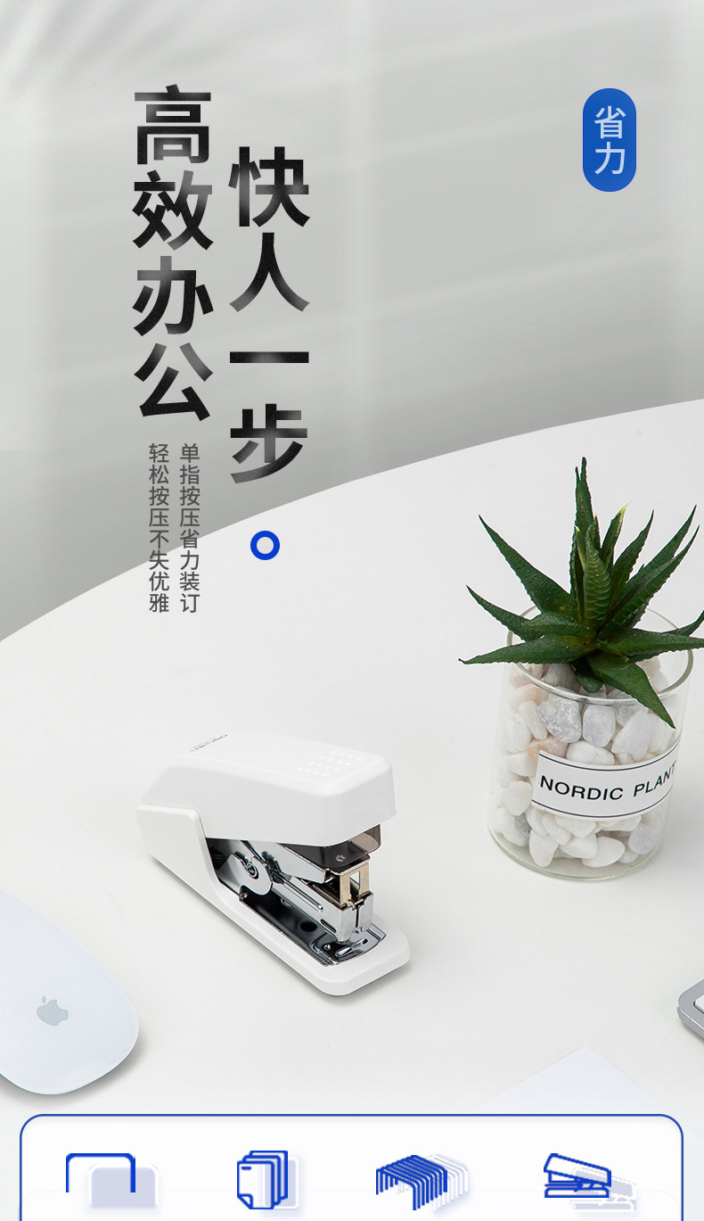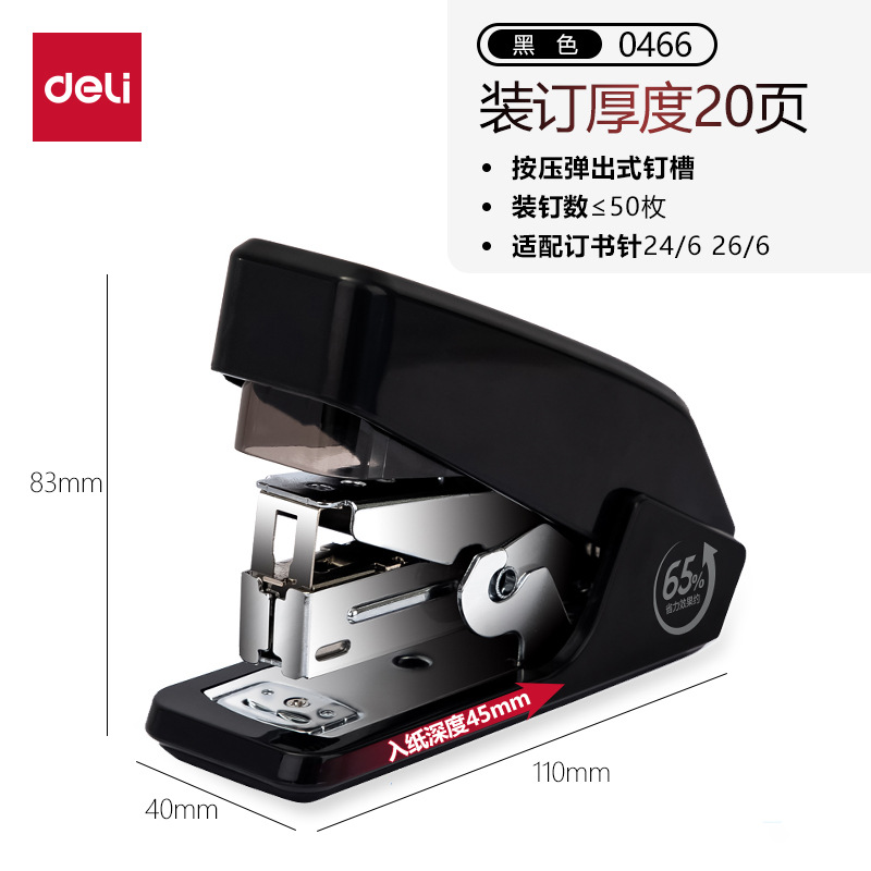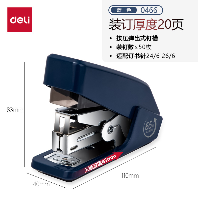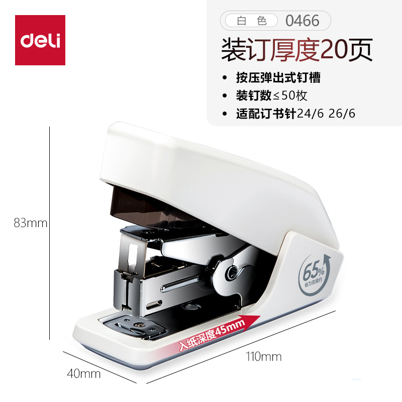 델리 0466 노동 절약 스테이플러 한 손가락 프레스 스테이플러 편리한 스테이플러