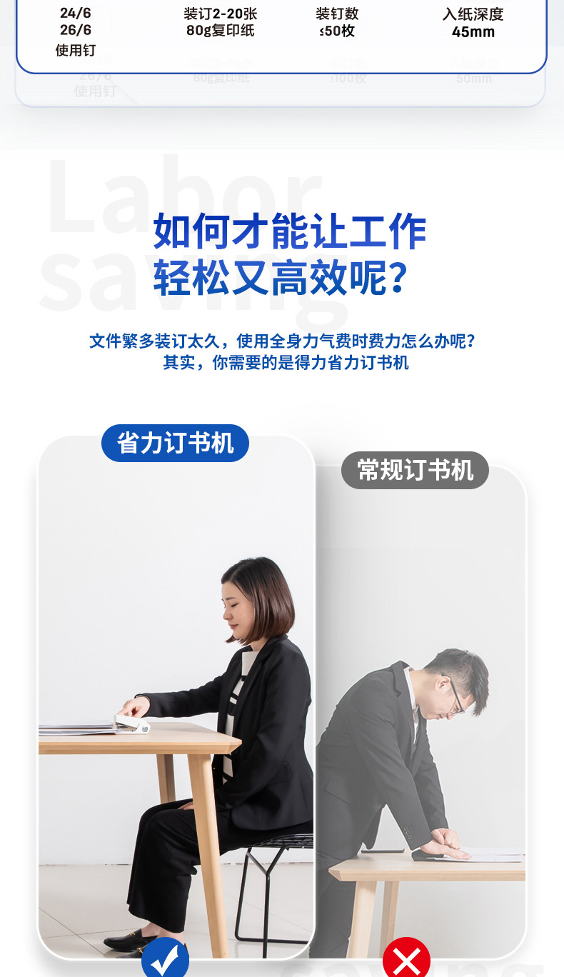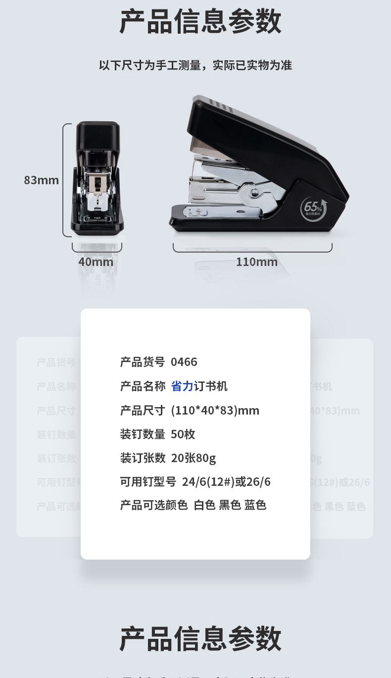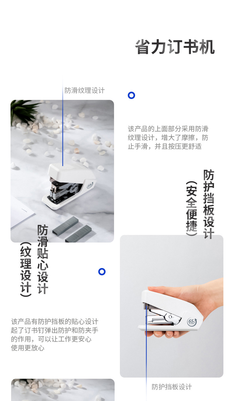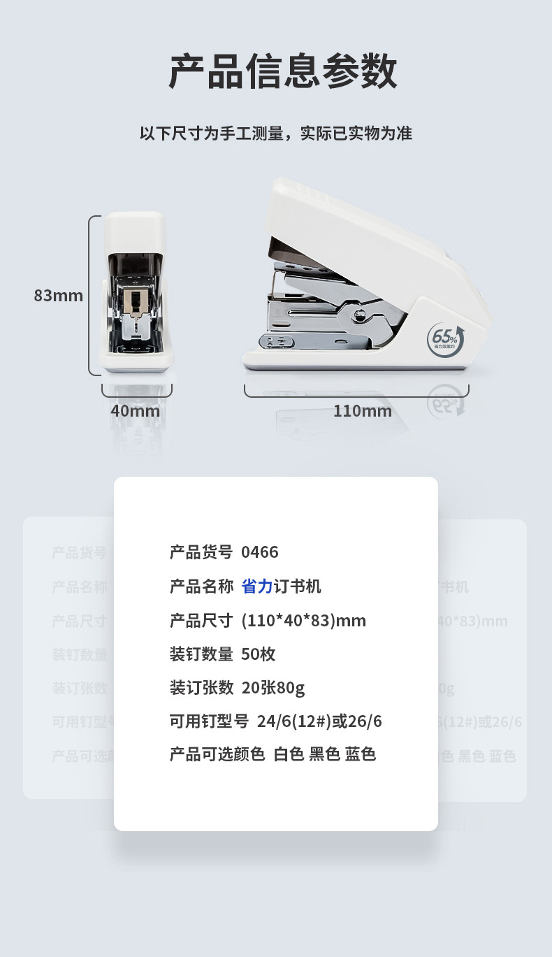 델리 0466 노동 절약 스테이플러 한 손가락 프레스 스테이플러 편리한 스테이플러