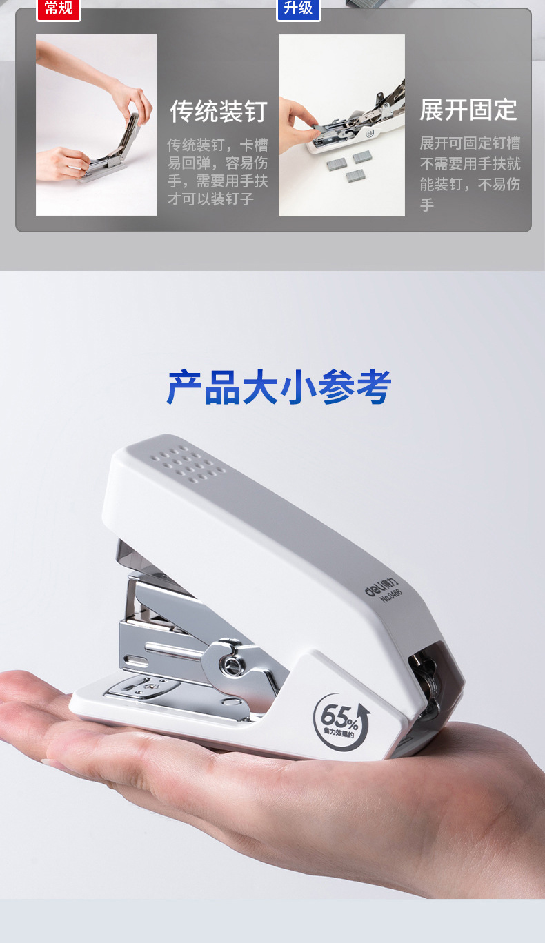 델리 0466 노동 절약 스테이플러 한 손가락 프레스 스테이플러 편리한 스테이플러스토어 가기