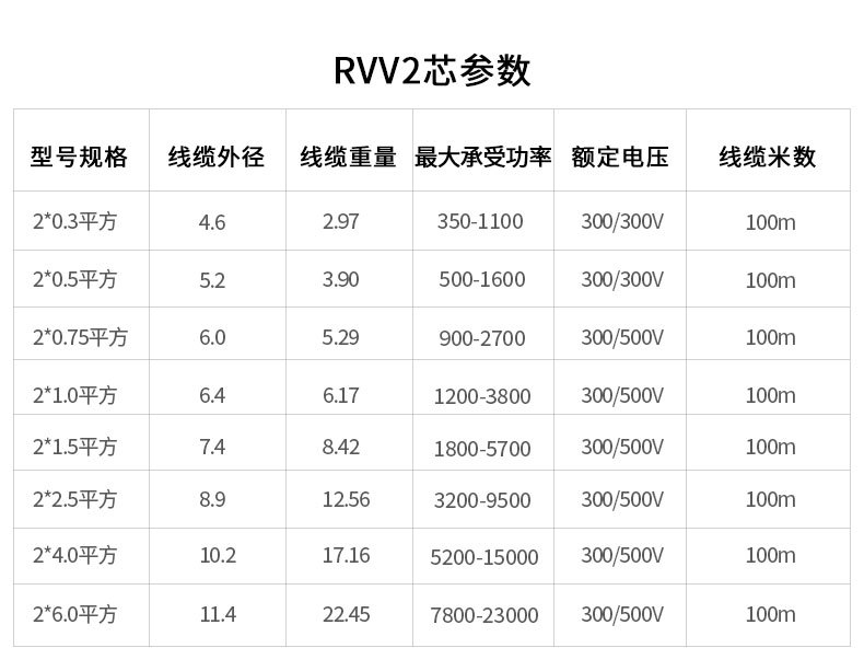 • 순수 구리 코어 RVV 2 코어*0.5 평방
