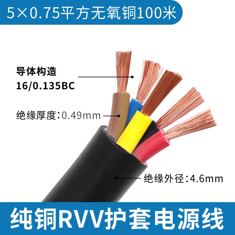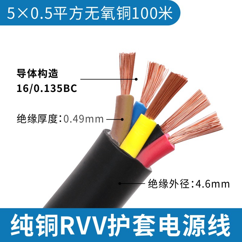• 순수 구리 코어 RVV 5 코어*0.5 평방