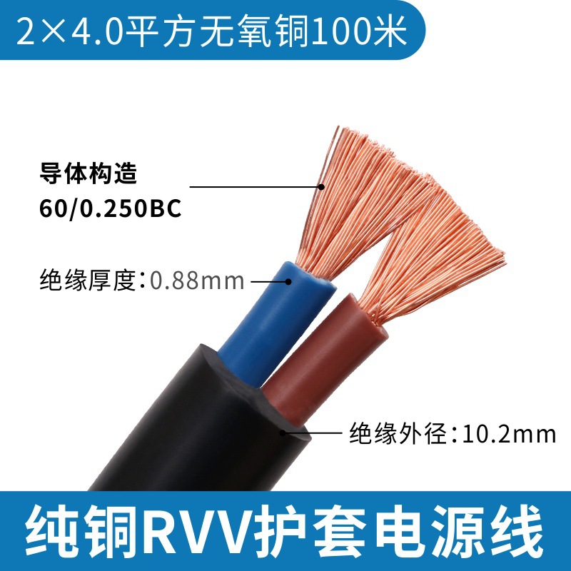 • 순수 구리 코어 RVV 2 코어*4 평방 미터